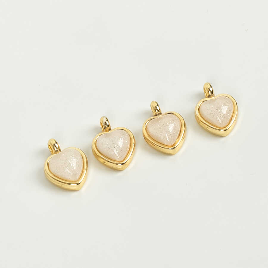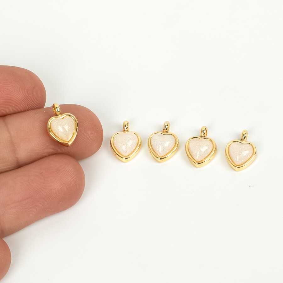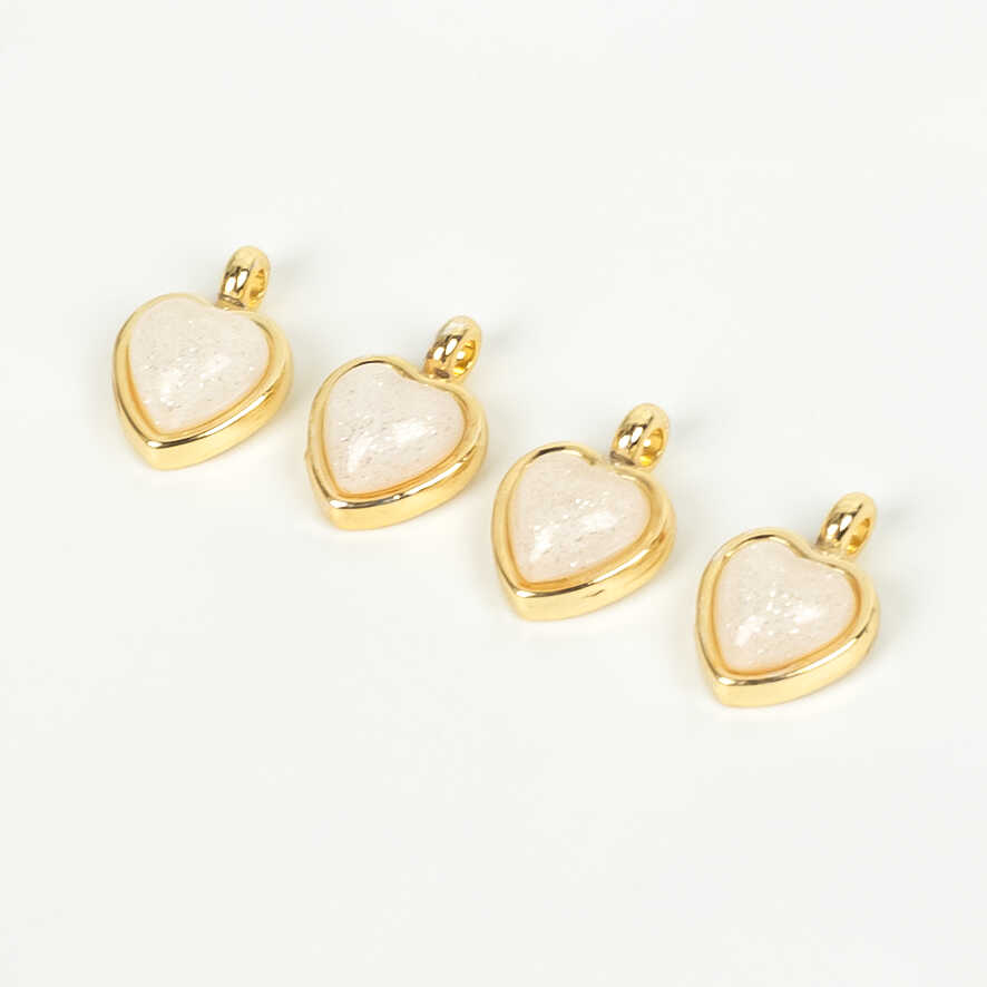 1 Adet - 11 mm Kalp Desenli Taşlı Uç, Charm Uç, Altın Kaplama 1.Kalite Kararmaz