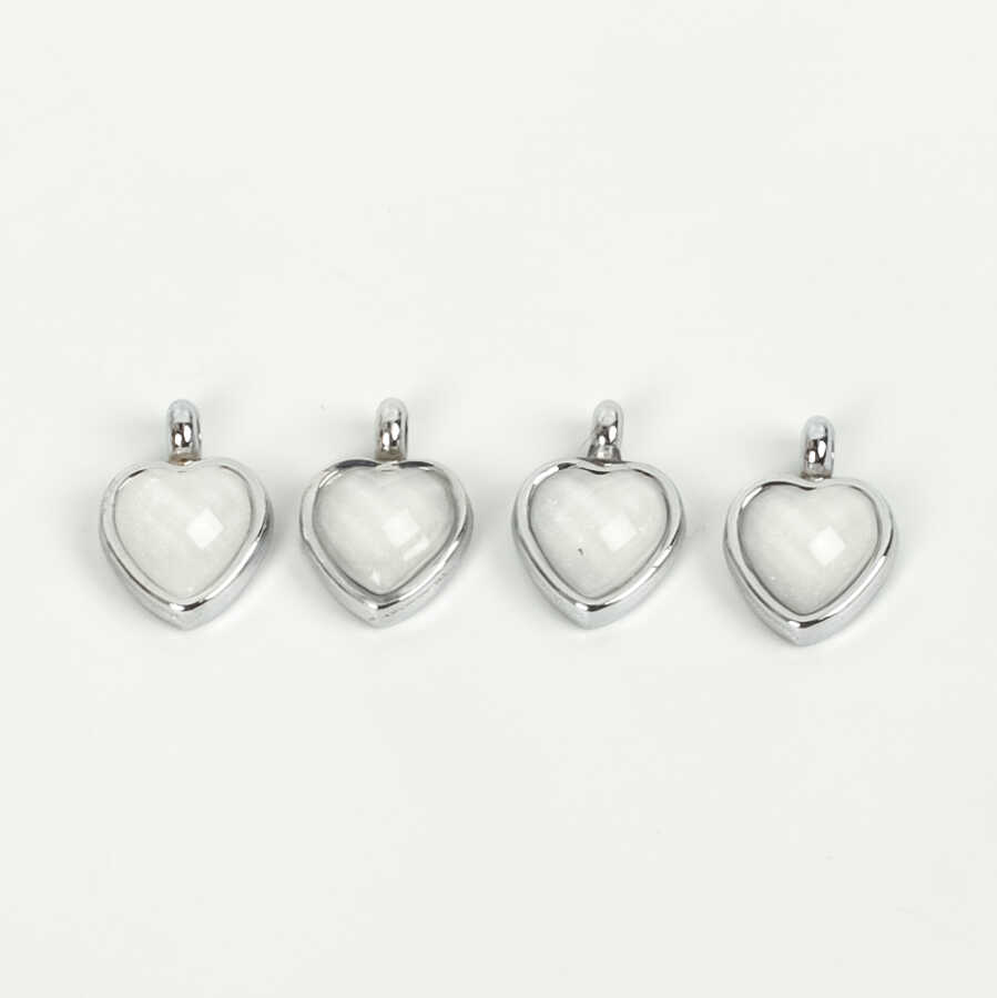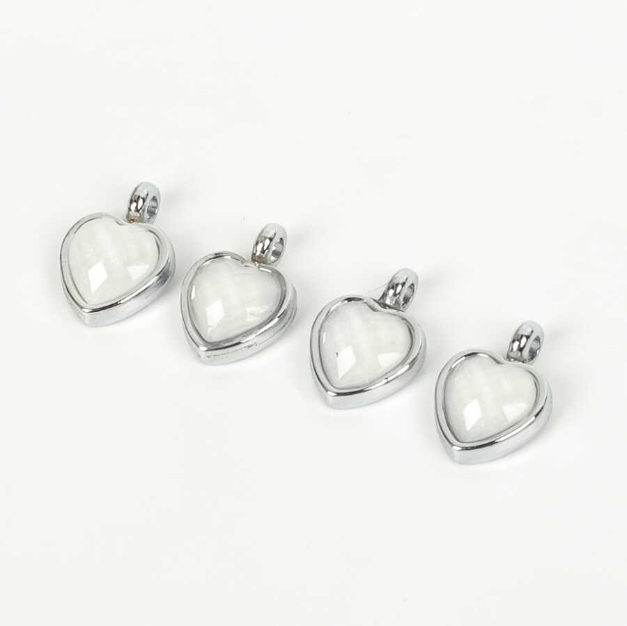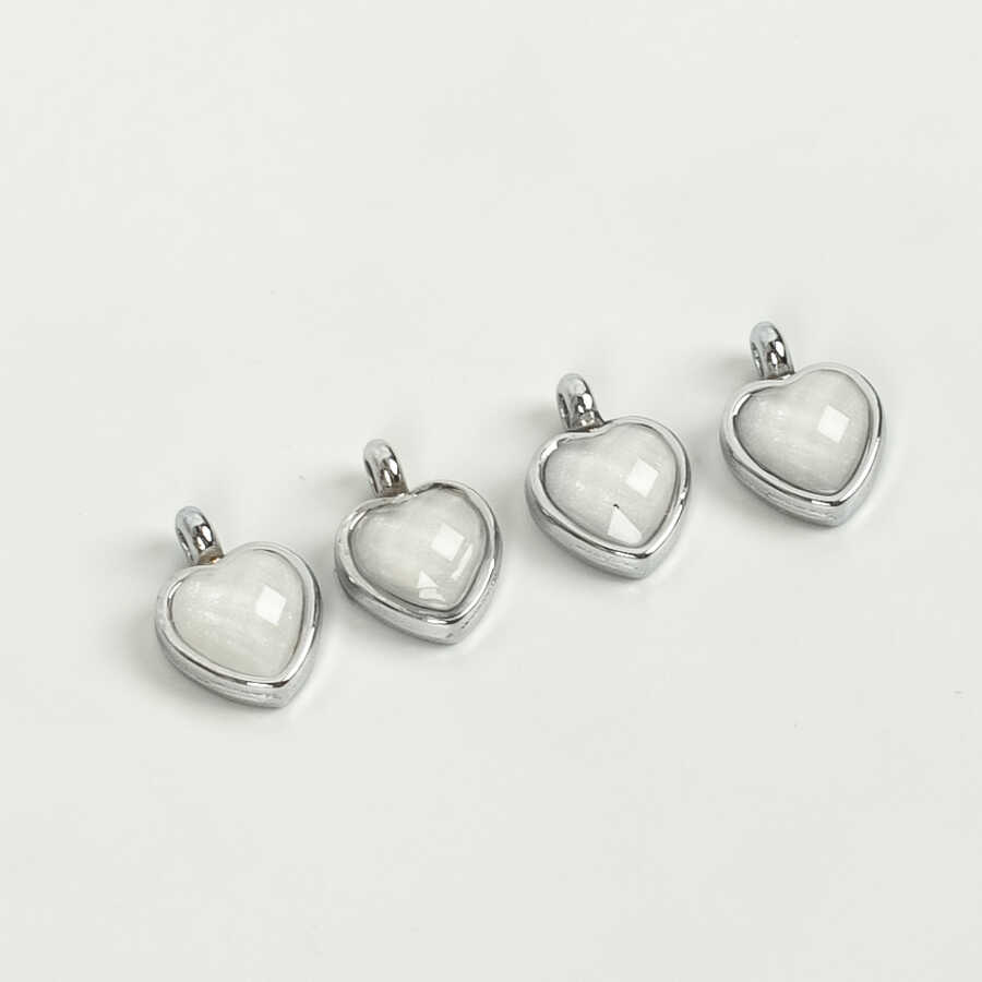 1 Adet - 11 mm Kalp Desenli Taşlı Uç, Charm Uç, Rodyum Kaplama 1.Kalite Kararmaz