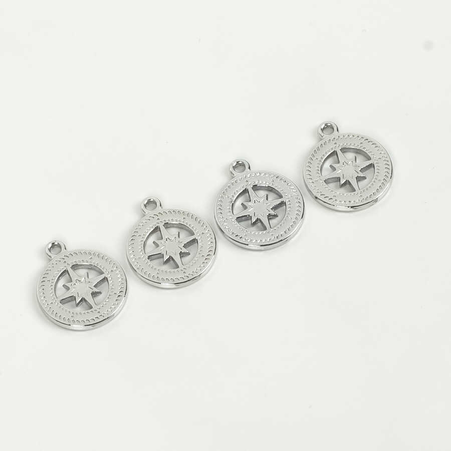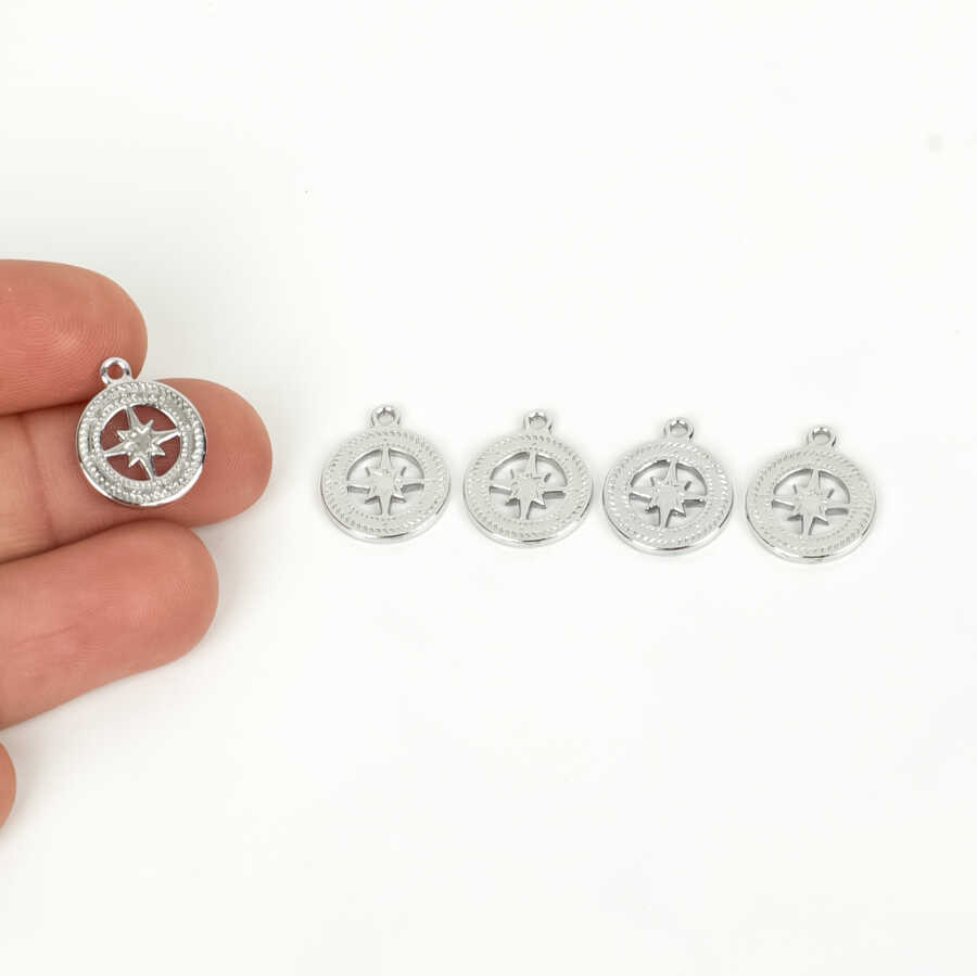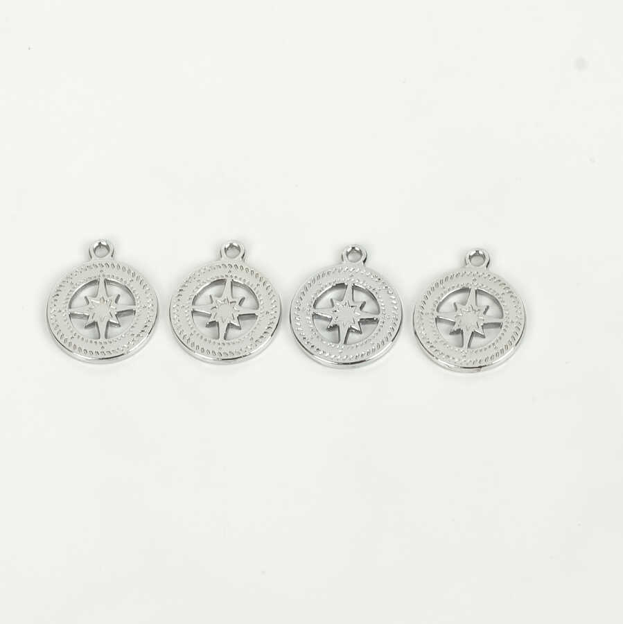 1 Adet - 12 mm Pusula Desenli Uç, Charm Uç, Rodyum Kaplama 1.Kalite Kararmaz