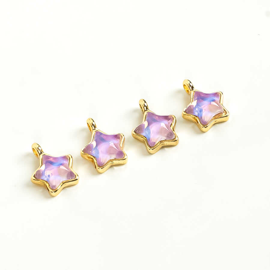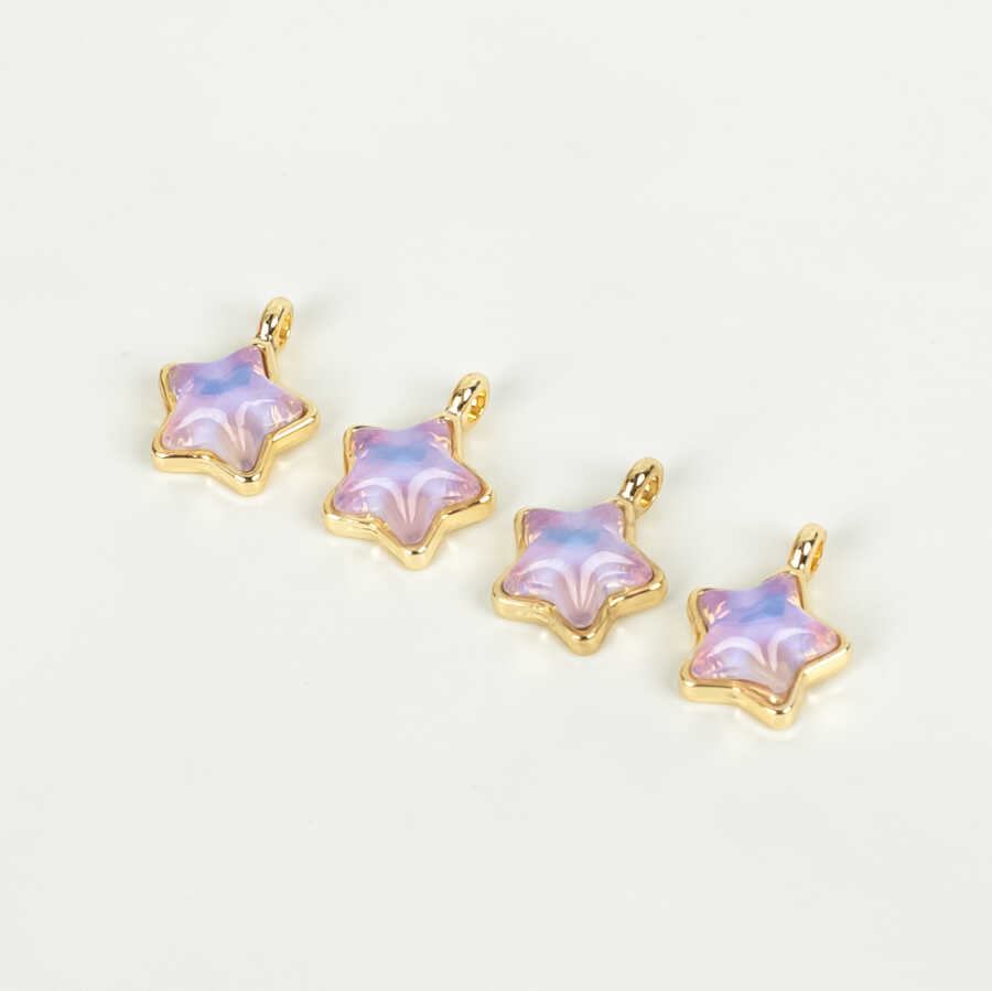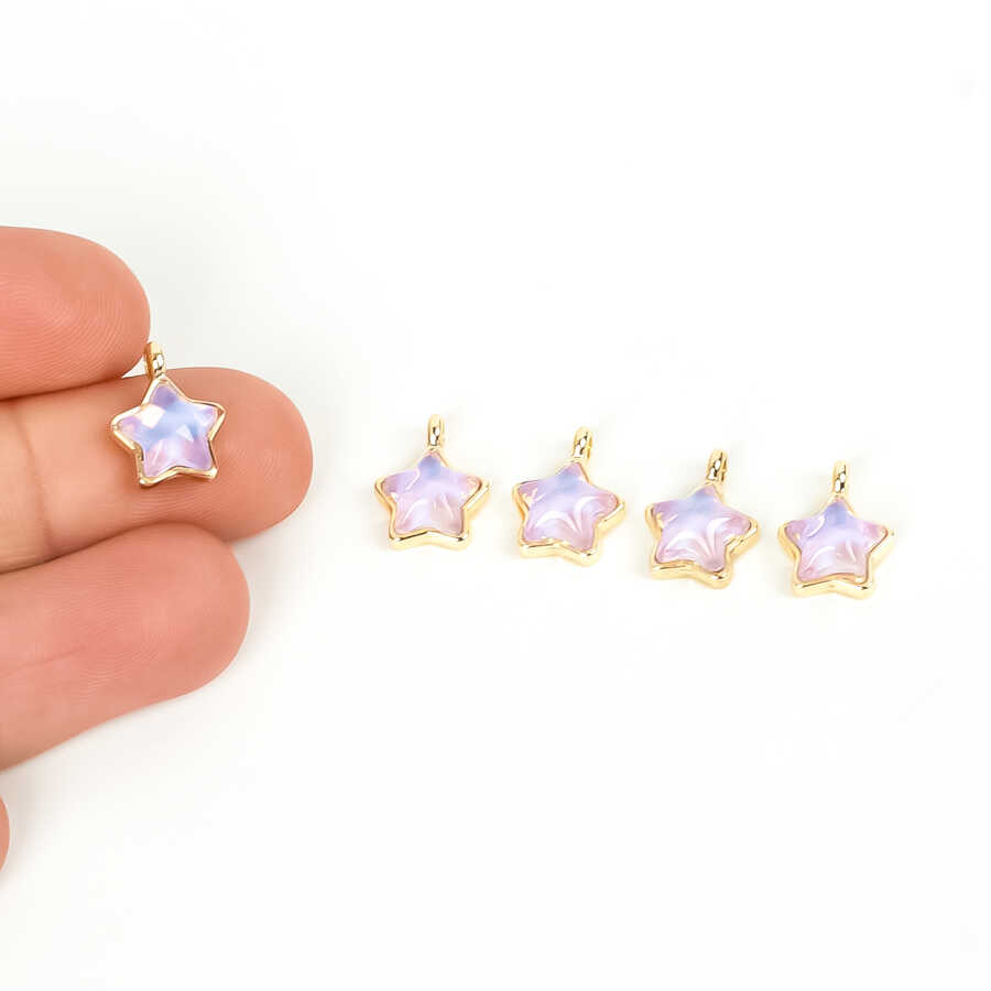1 Adet - 12 mm Yıldız Desenli Taşlı Uç, Charm Uç, Altın Kaplama 1.Kalite Kararmaz