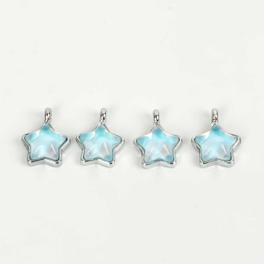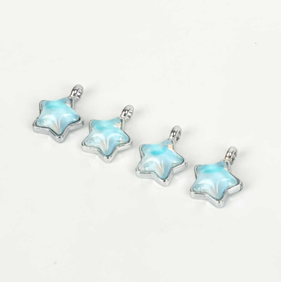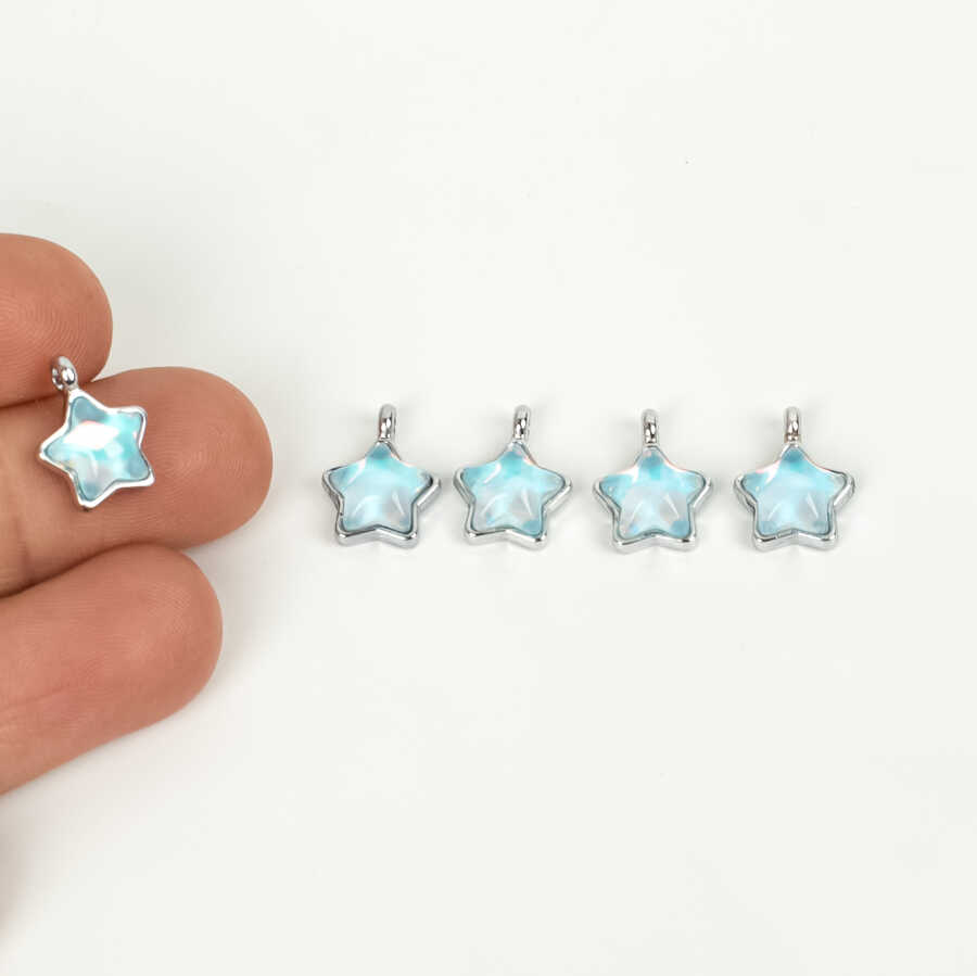 1 Adet - 12 mm Yıldız Desenli Taşlı Uç, Charm Uç, Rodyum Kaplama 1.Kalite Kararmaz