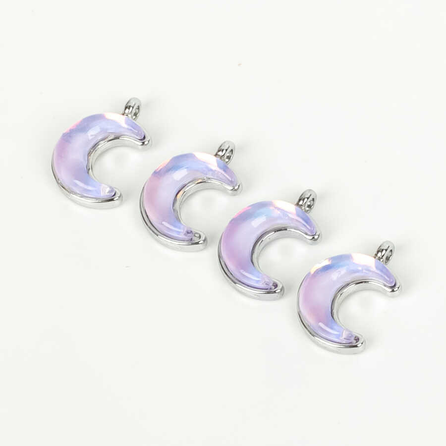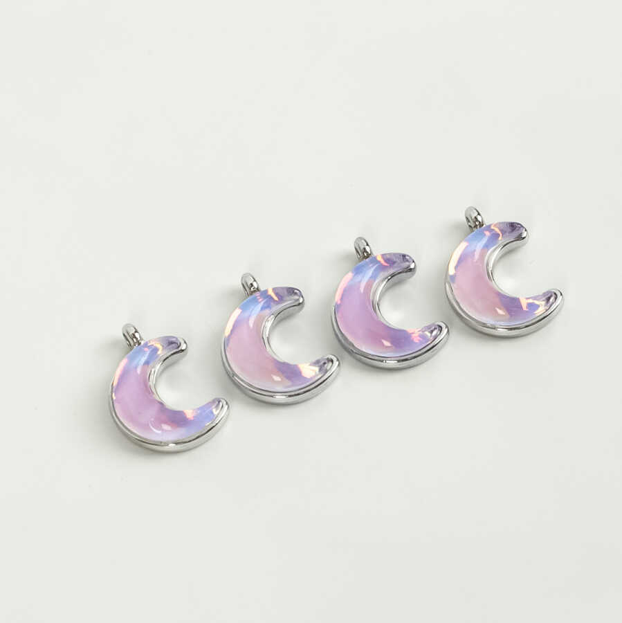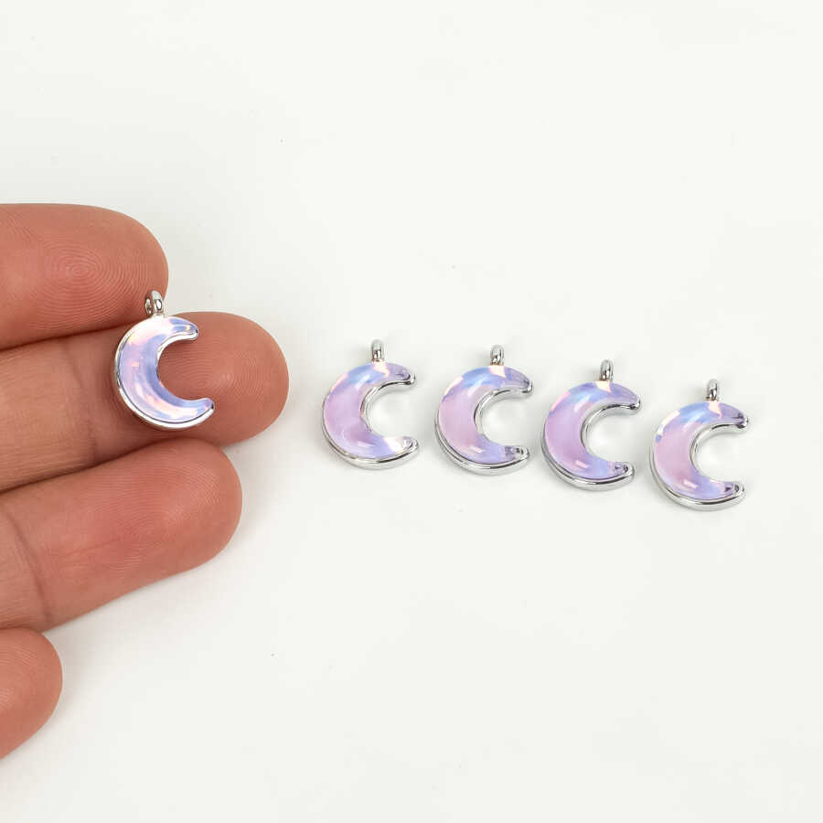1 Adet - 15 mm Ay Desenli Taşlı Uç, Charm Uç, Rodyum Kaplama 1.Kalite Kararmaz