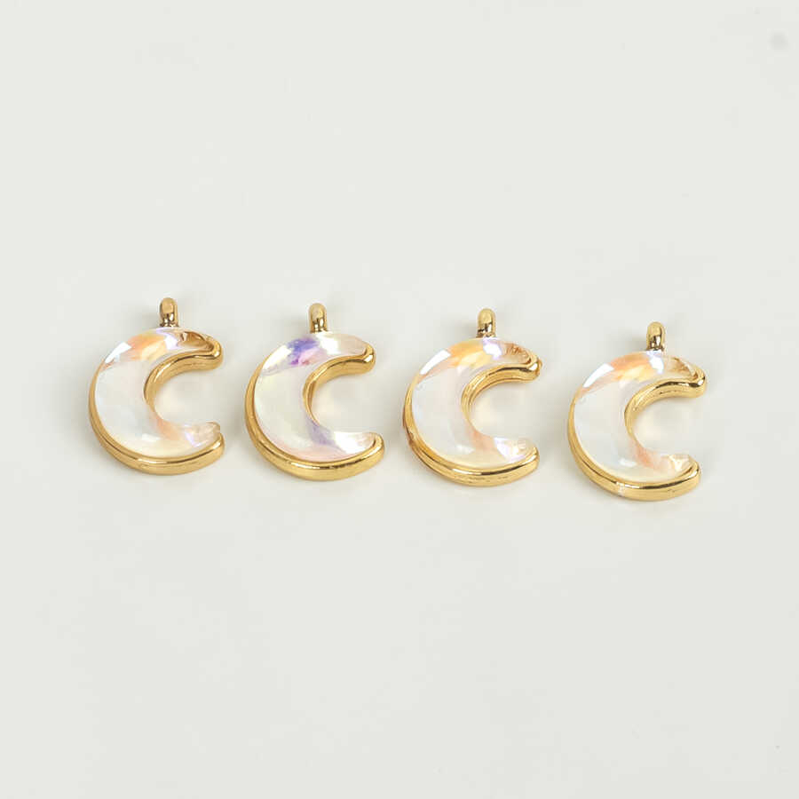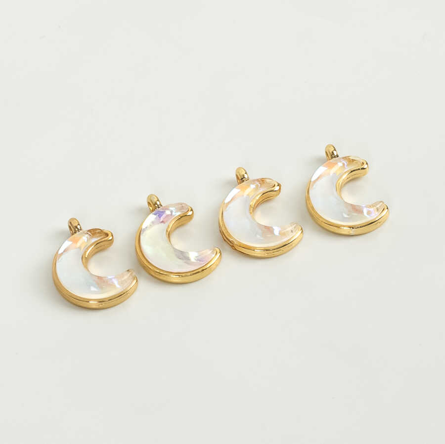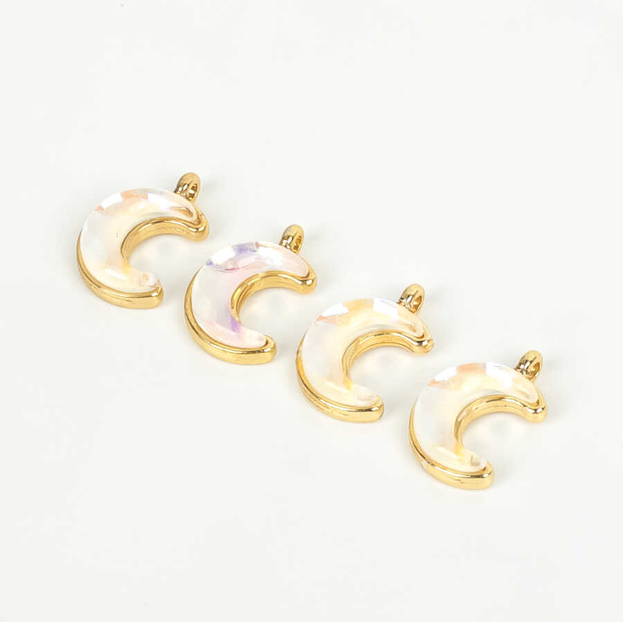 1 Adet - 15 mm Ay Desenli Taşlı Uç, Charm Uç, Altın Kaplama 1.Kalite Kararmaz