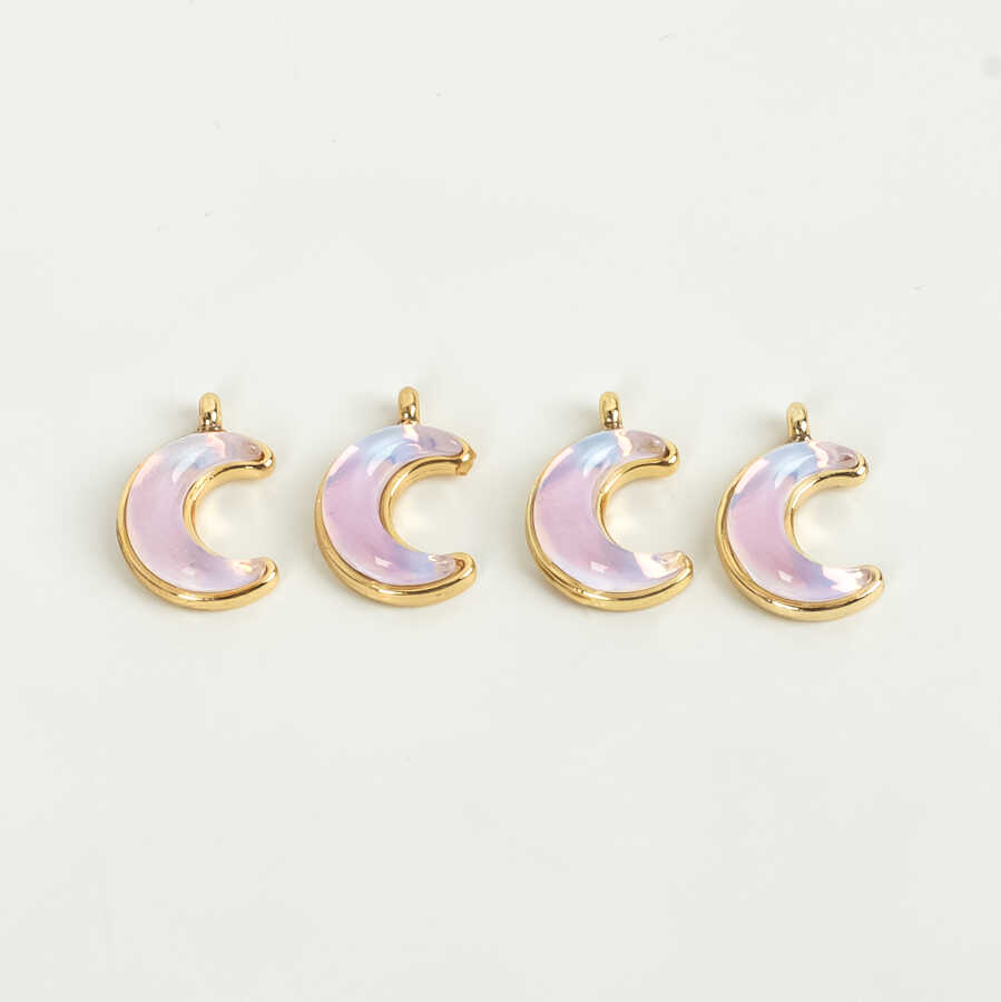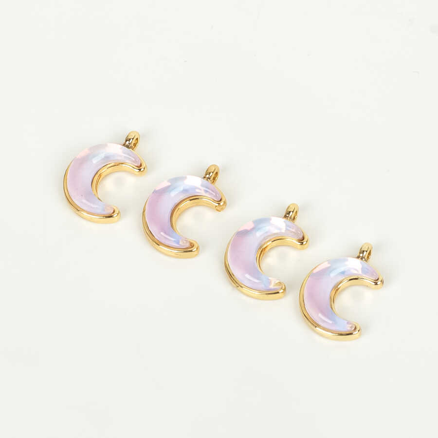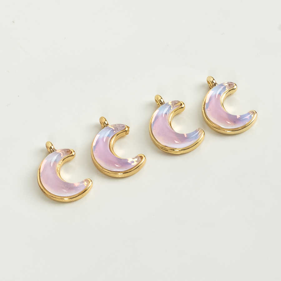 1 Adet - 15 mm Ay Desenli Taşlı Uç, Charm Uç, Altın Kaplama 1.Kalite Kararmaz