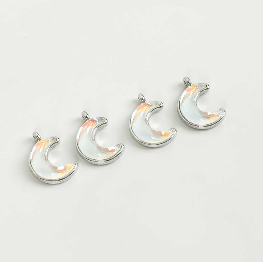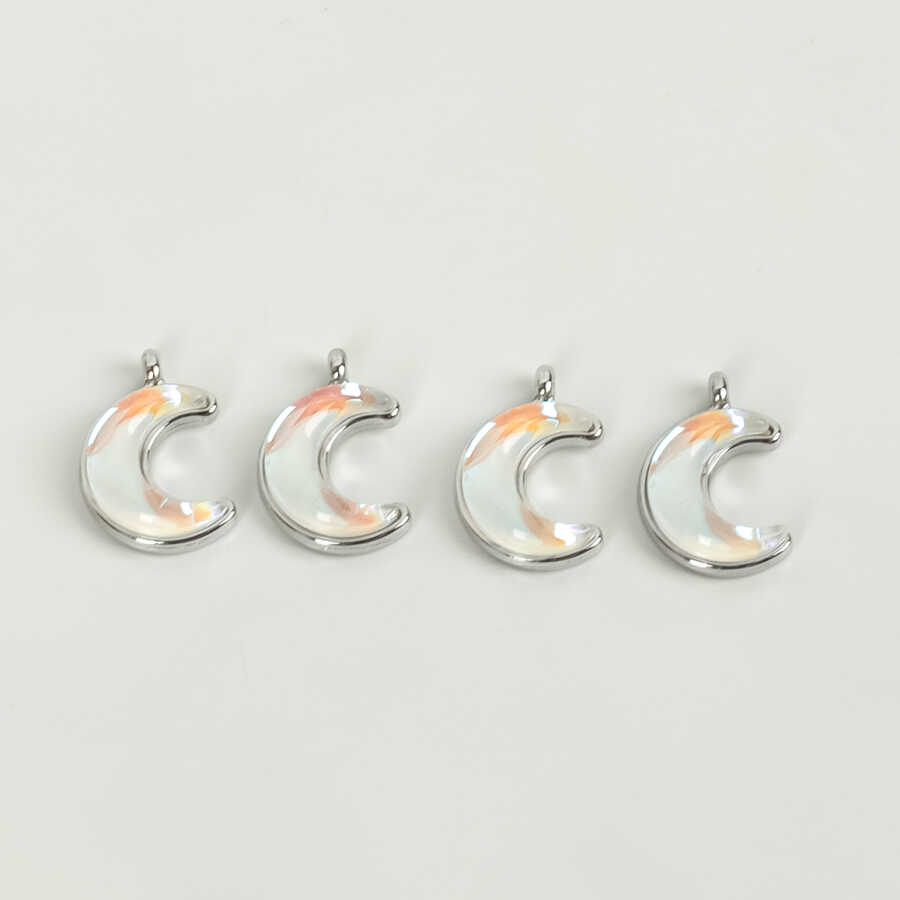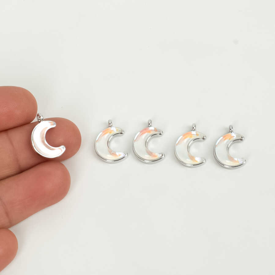 1 Adet - 15 mm Ay Desenli Taşlı Uç, Charm Uç, Rodyum Kaplama 1.Kalite Kararmaz
