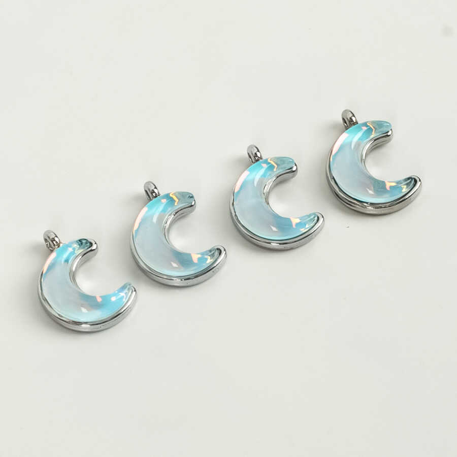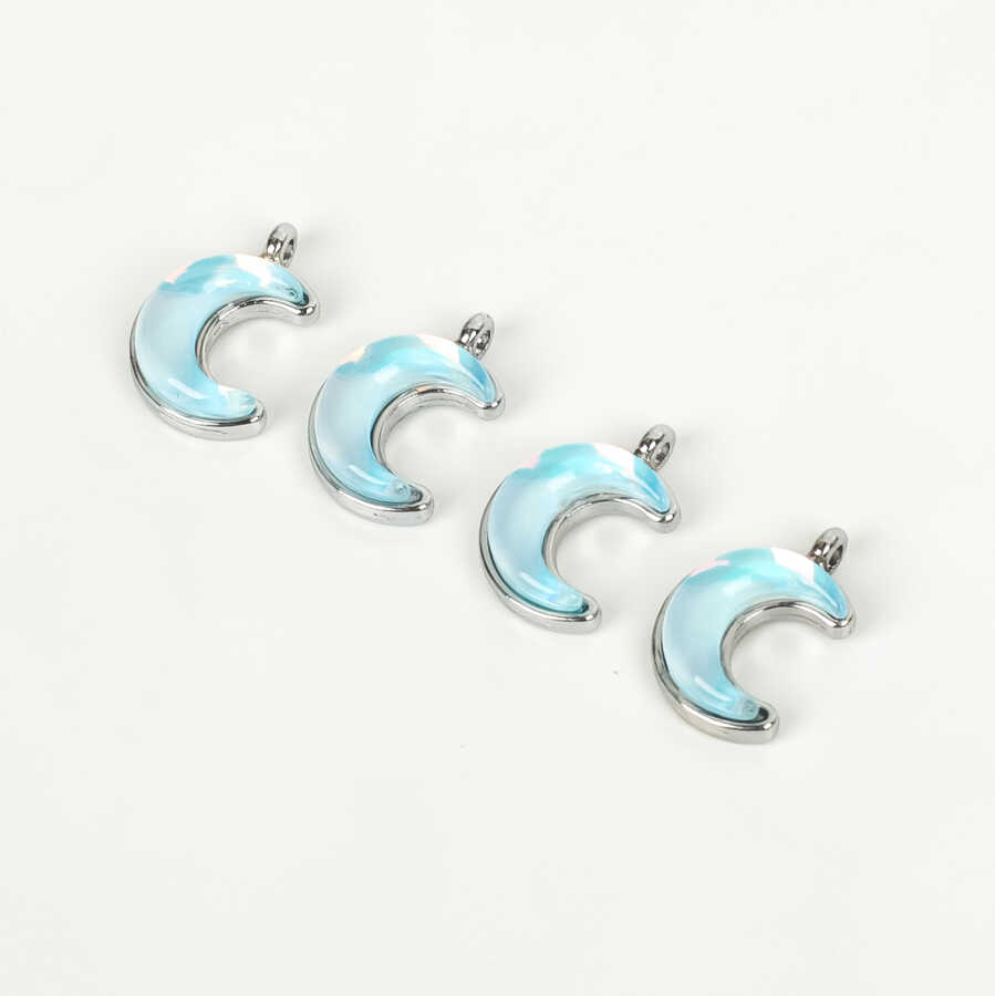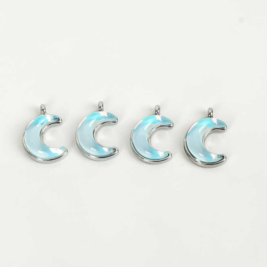 1 Adet - 15 mm Ay Desenli Taşlı Uç, Charm Uç, Rodyum Kaplama 1.Kalite Kararmaz