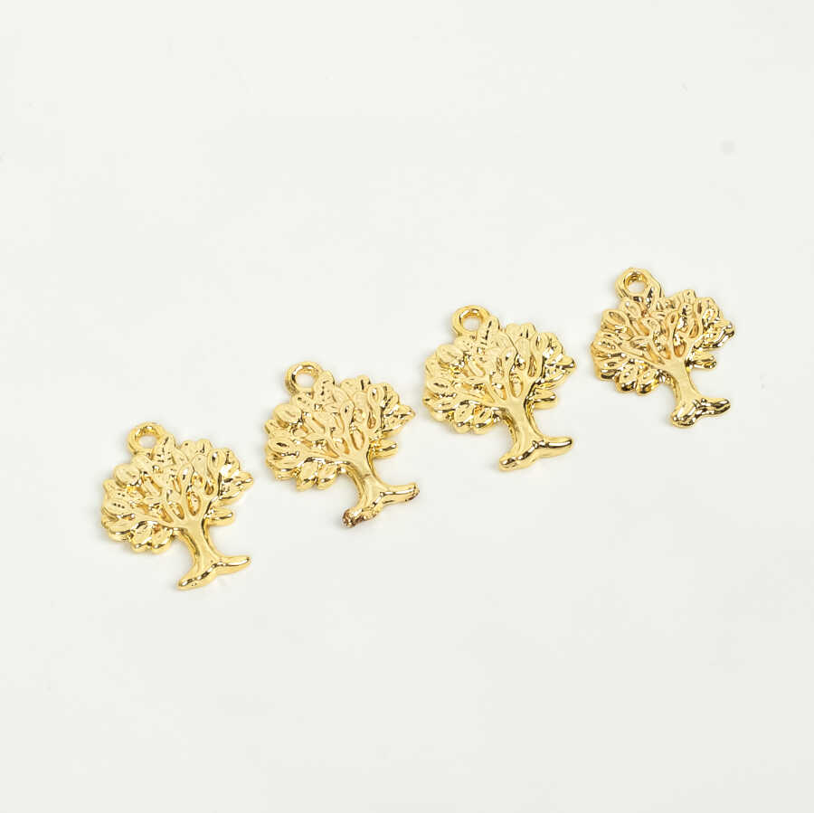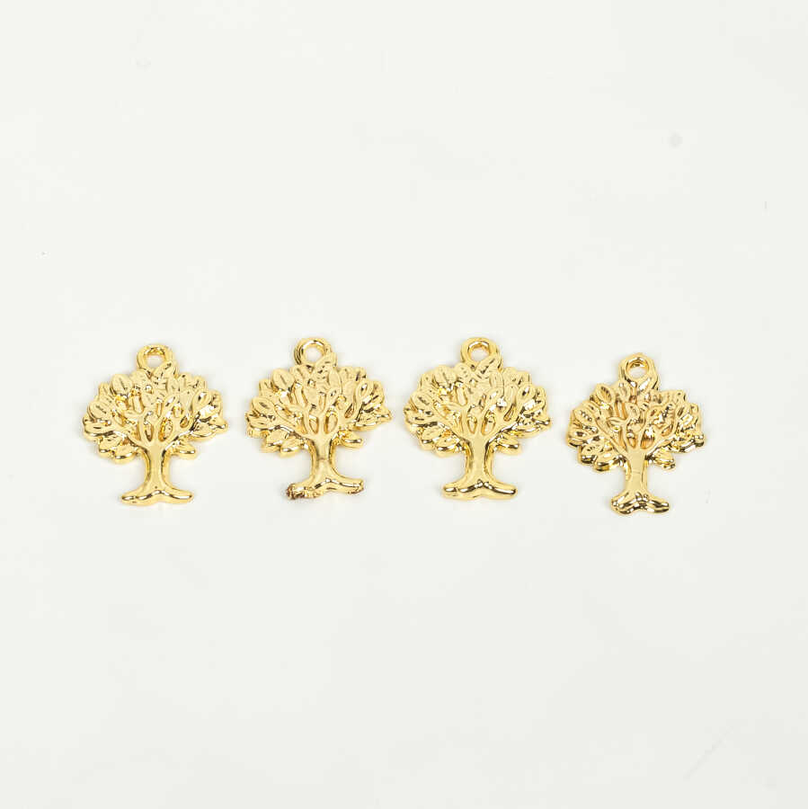 1 Adet - 15 mm Yaşam Ağacı Desenli Uç, Charm Uç, Altın Kaplama 1.Kalite Kararmaz
