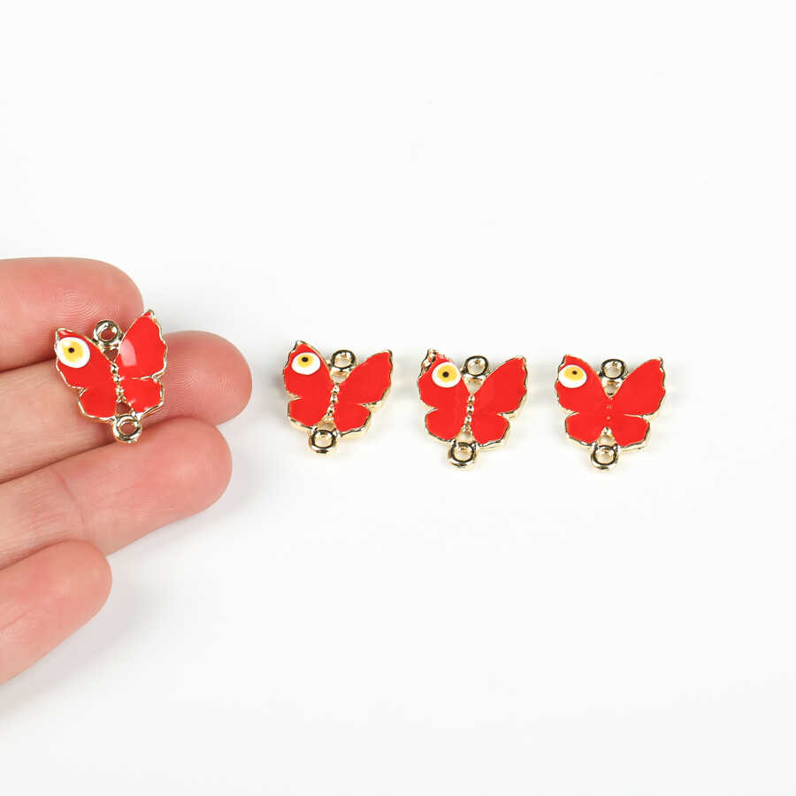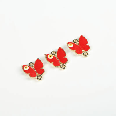 1 ADET - 19 mm KIRMIZI NAZAR MİNELİ ÇİFT KULP KELEBEK TAKI APARATI, ALTIN KAPLAMA, 1.KALİTE
