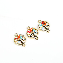 1 ADET - 23 mm AĞAÇ DESENLİ BEŞ RENK NAZAR MİNELİ ALTIN KAPLAMA TAKI APARATI, 1. KALİTE (KARARMAZ)