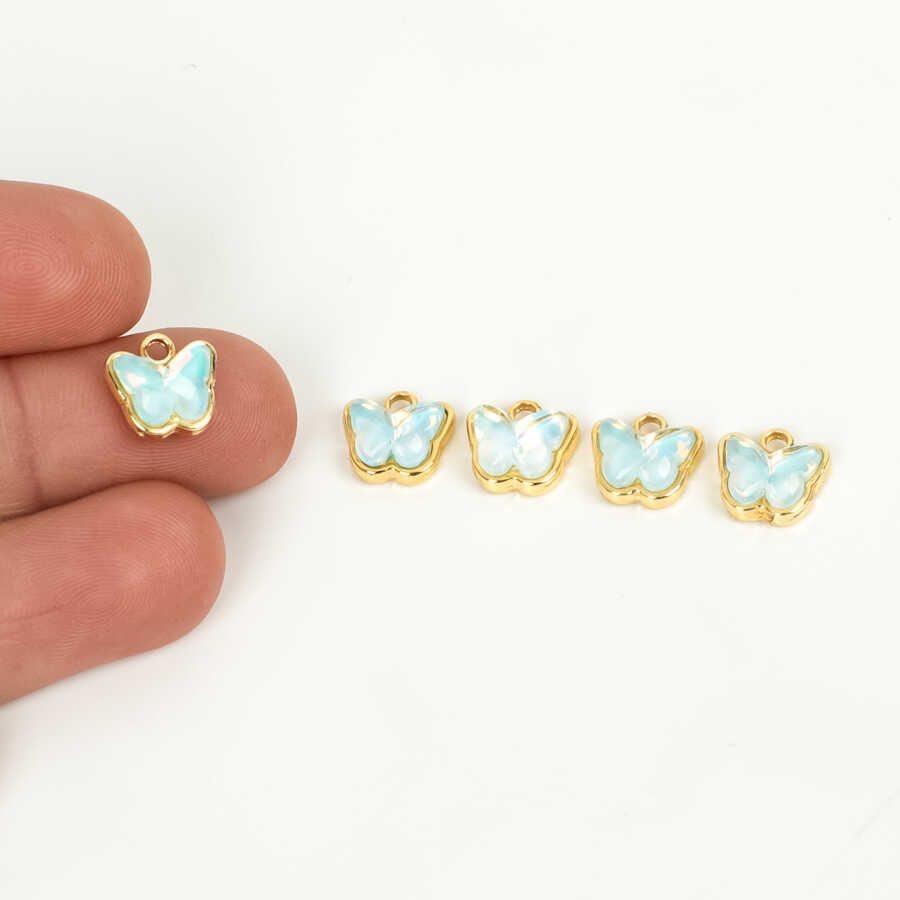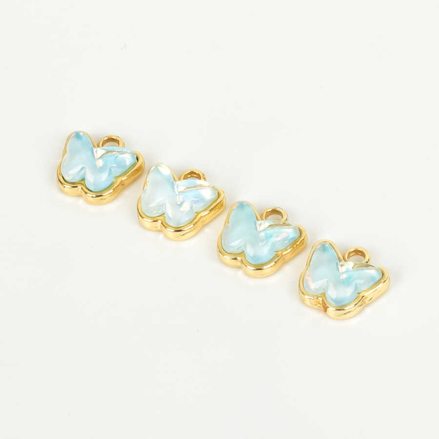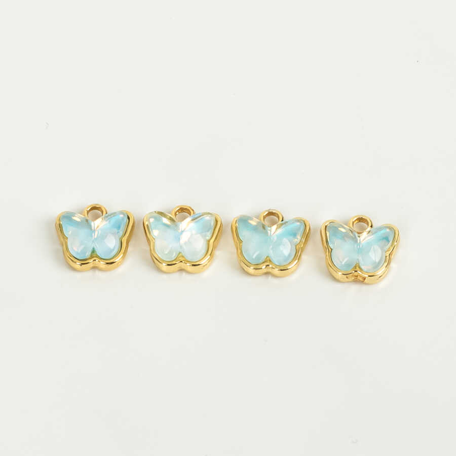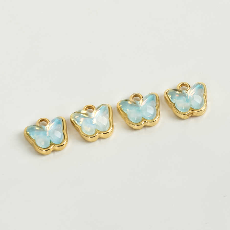 1 Adet - 9 mm Kelebek Desenli Taşlı Uç, Charm Uç, Altın Kaplama 1.Kalite Kararmaz
