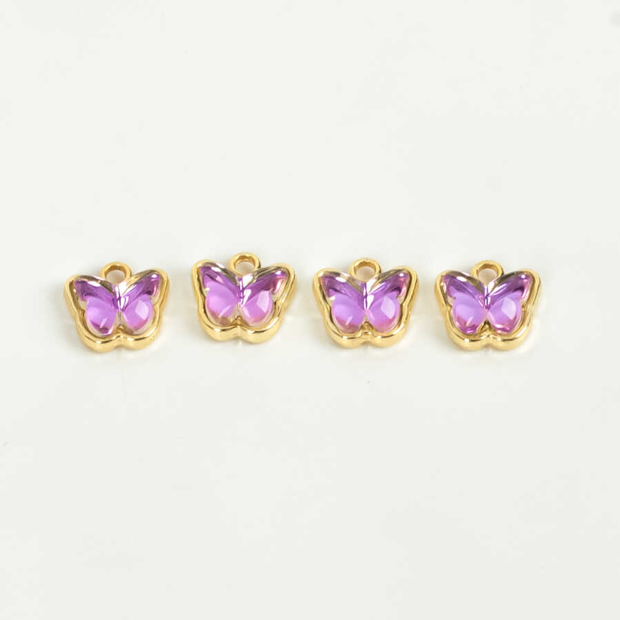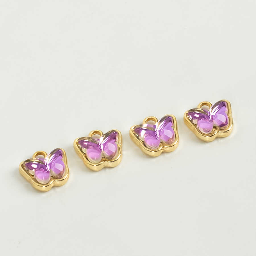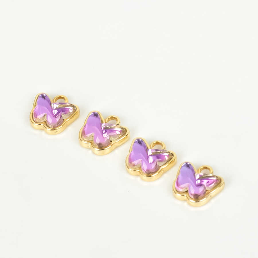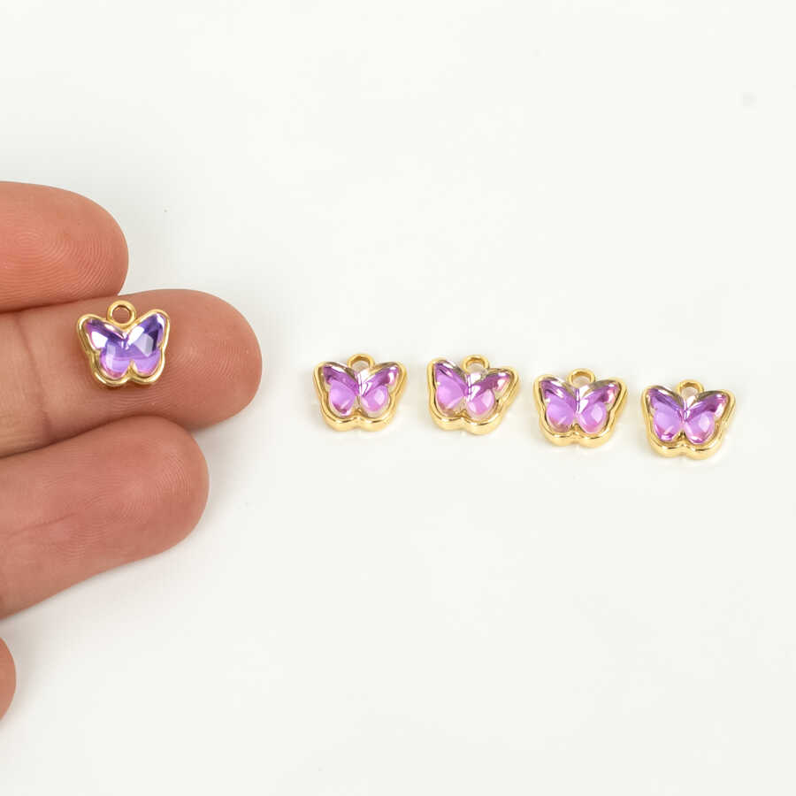 1 Adet - 9 mm Kelebek Desenli Taşlı Uç, Charm Uç, Altın Kaplama 1.Kalite Kararmaz