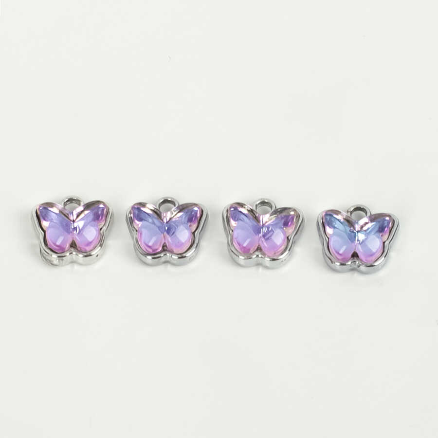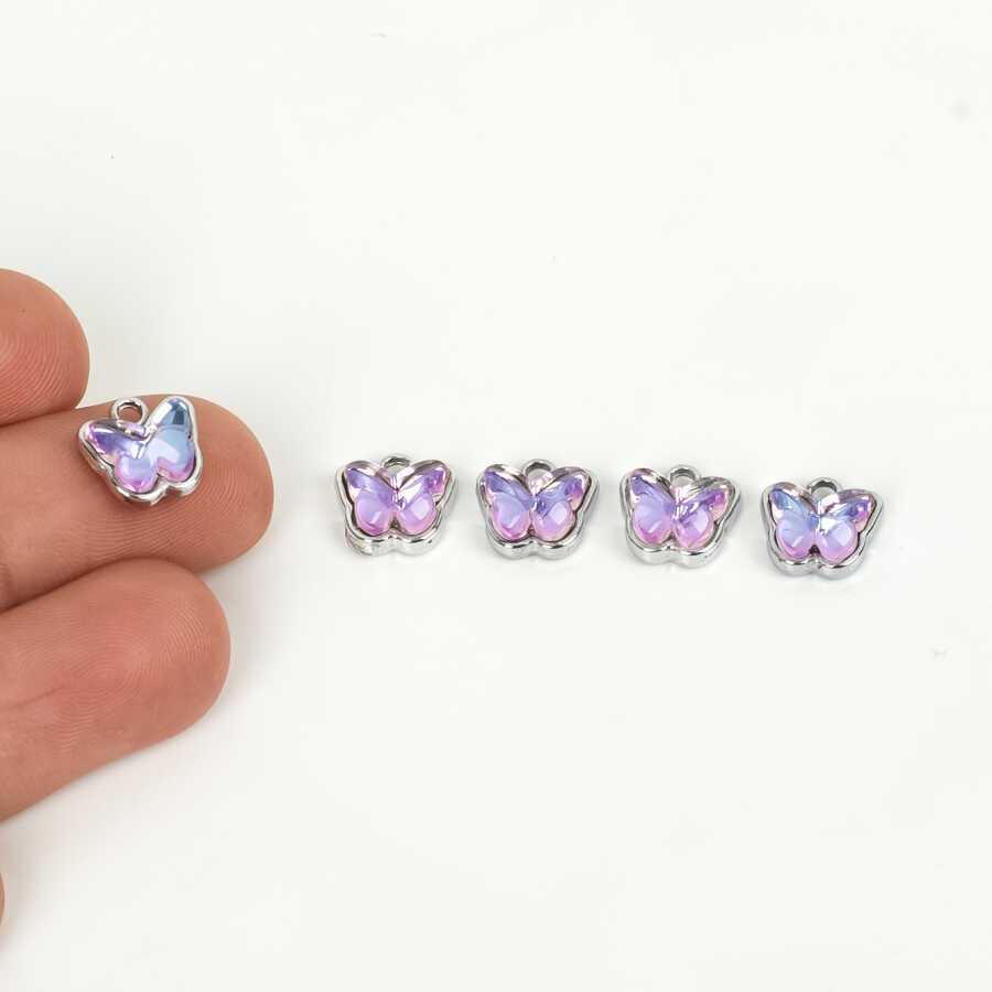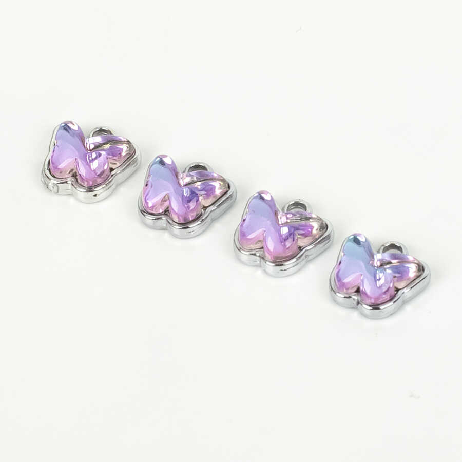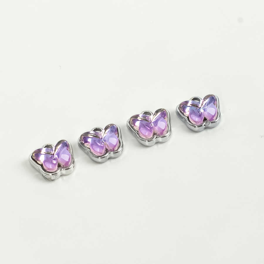 1 Adet - 9 mm Kelebek Desenli Taşlı Uç, Charm Uç, Rodyum Kaplama 1.Kalite Kararmaz