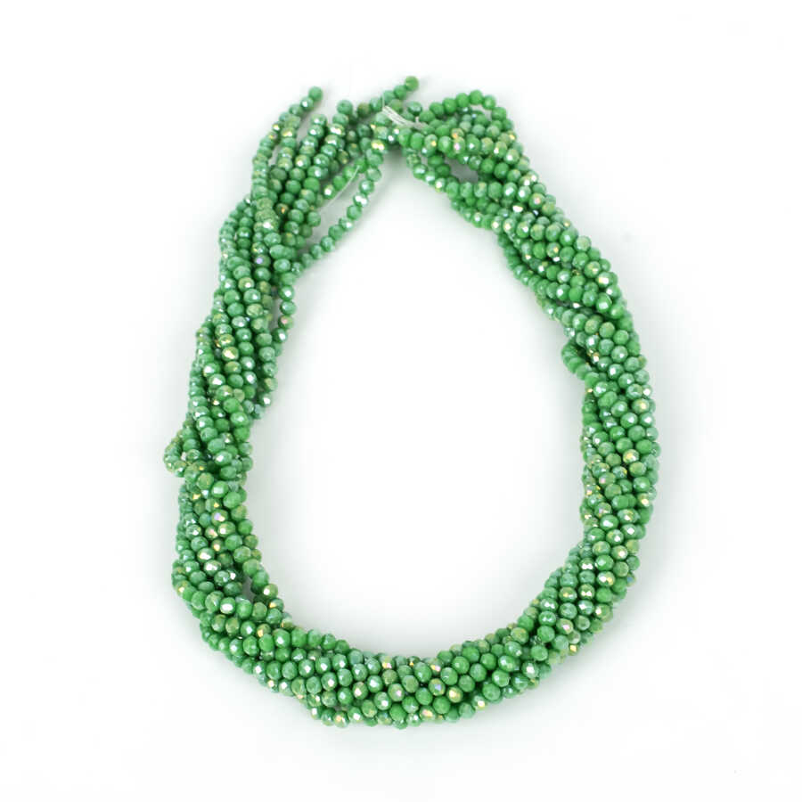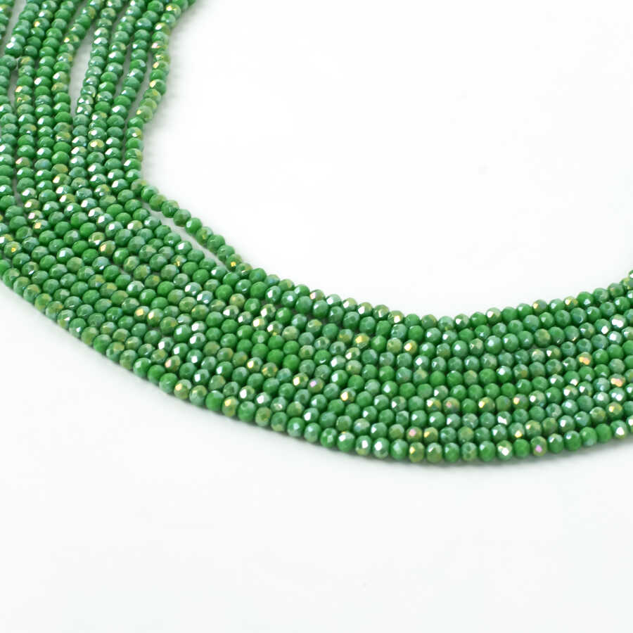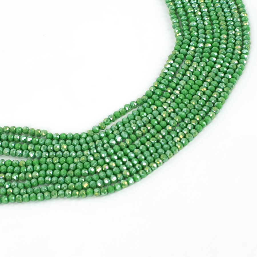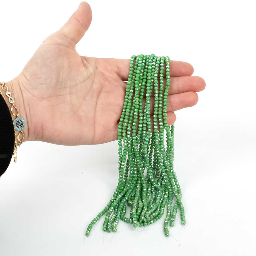 1 Dizi (130-135 Adet) - 3 mm Yassı Kristal Cam Boncuk Dizisi Mat Janjanlı Yeşil Renk 1.Kalite