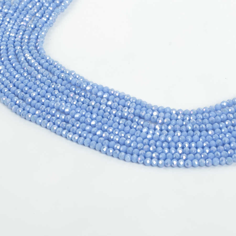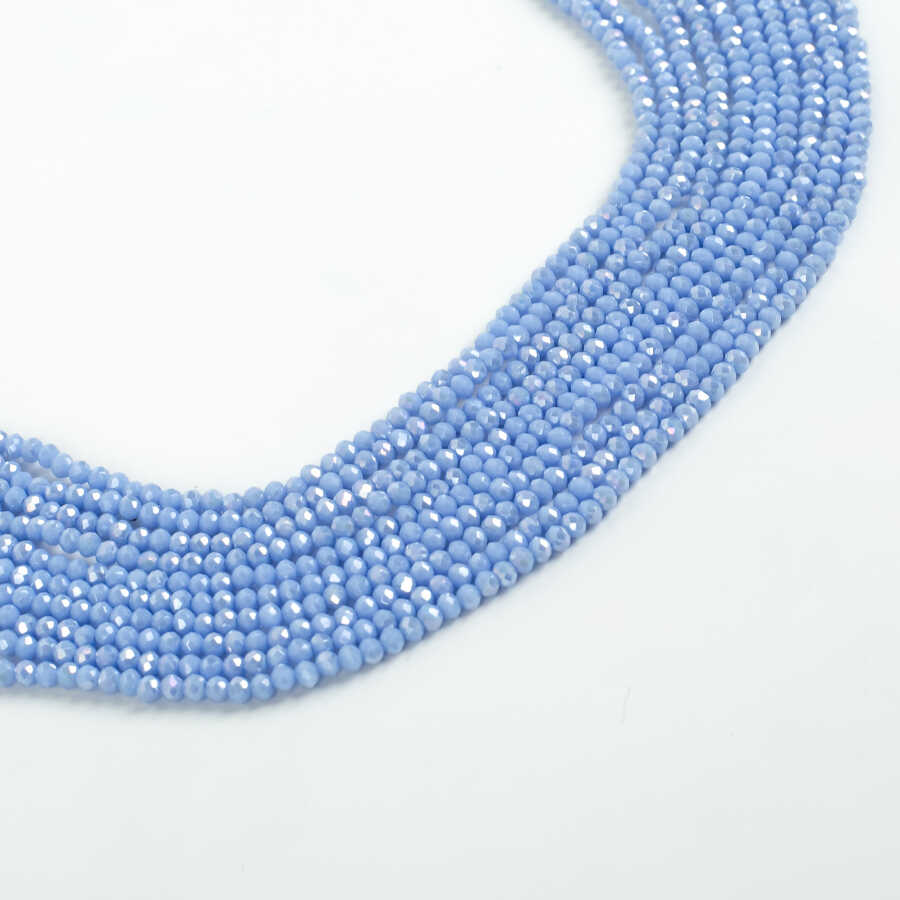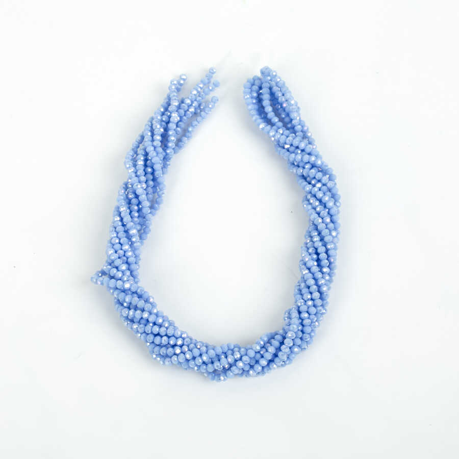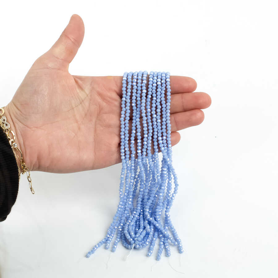 1 Dizi (130-135 Adet) - 3 mm Yassı Kristal Cam Boncuk Dizisi Mat Janjanlı Bulut Mavisi Renk 1.Kalite