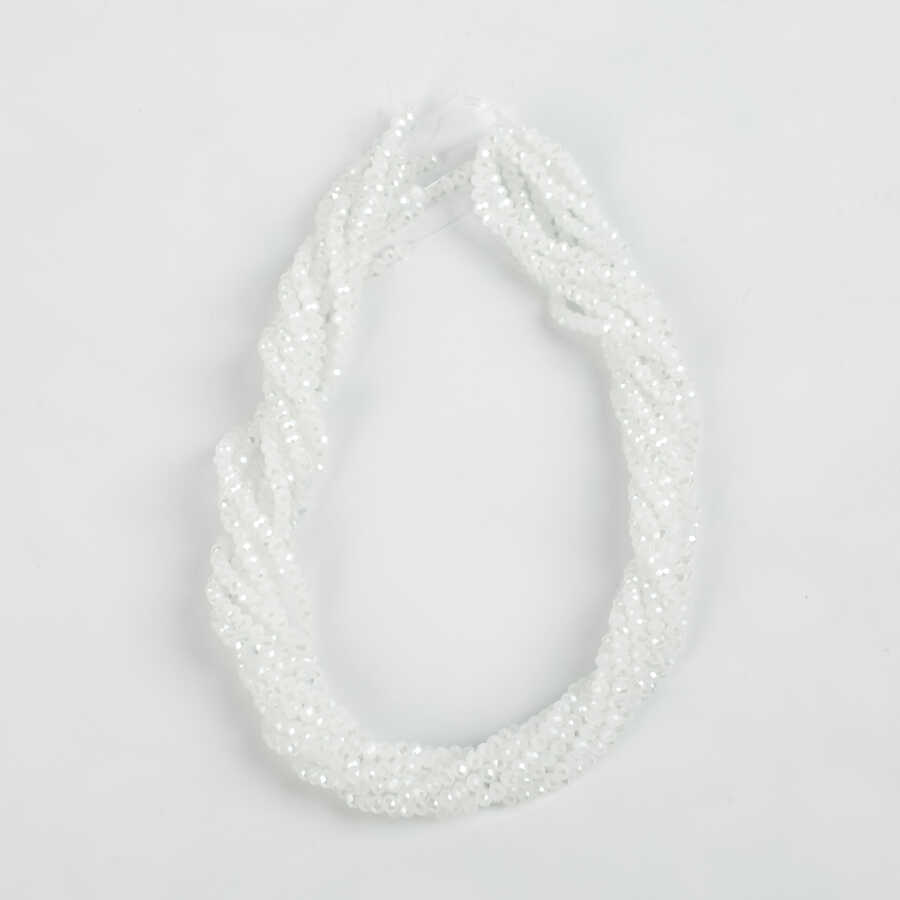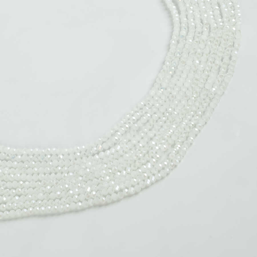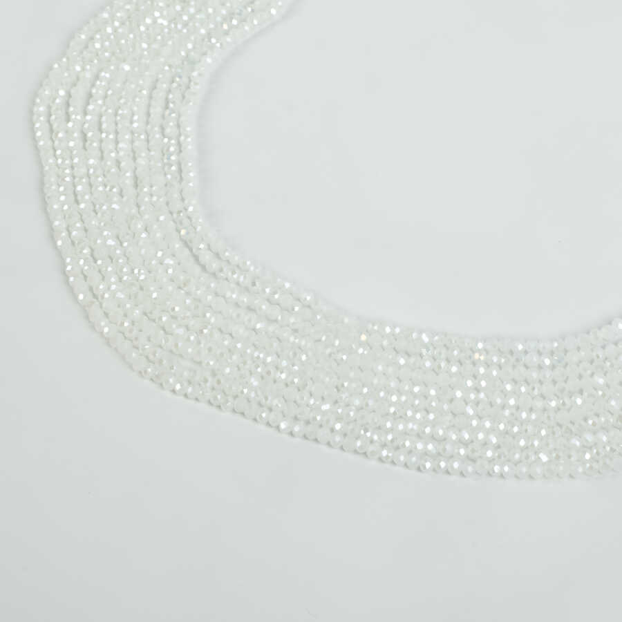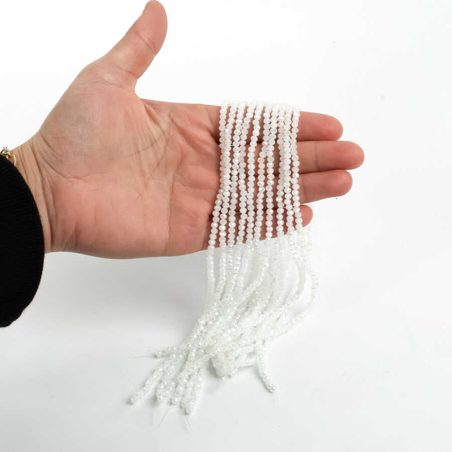 1 Dizi (130-135 Adet) - 3 mm Yassı Kristal Cam Boncuk Dizisi Mat Janjanlı Buz Beyaz Renk 1.Kalite