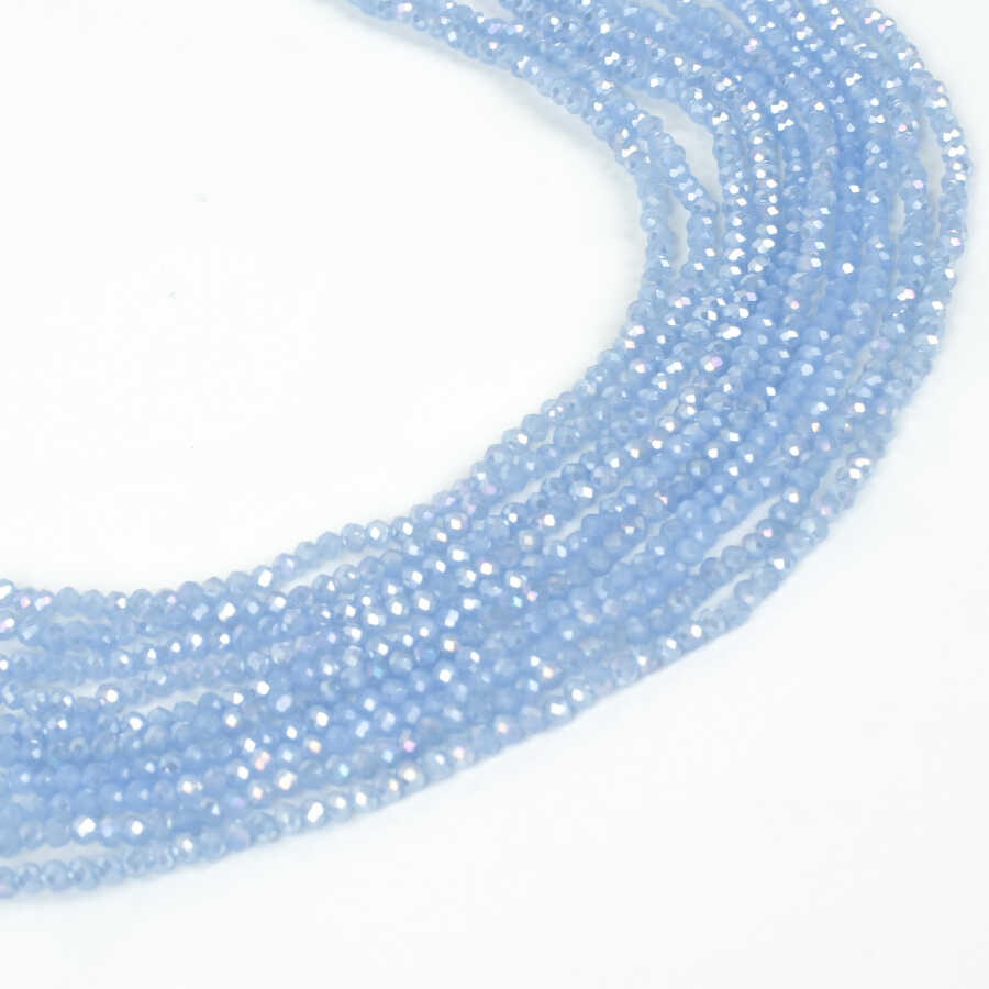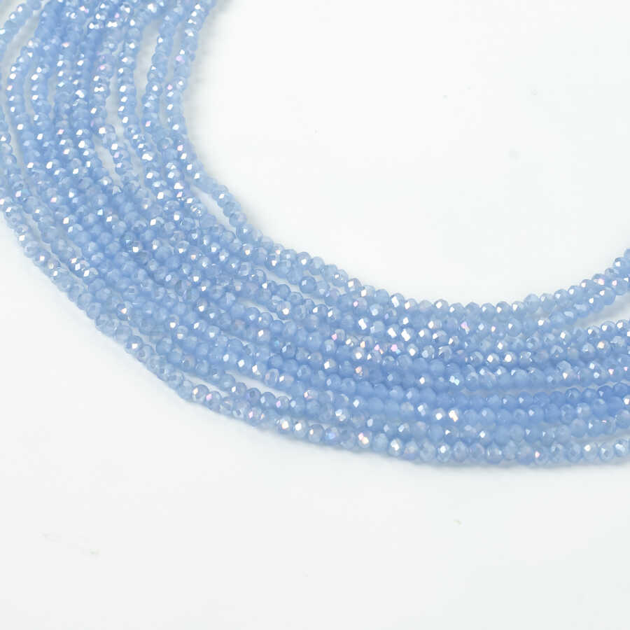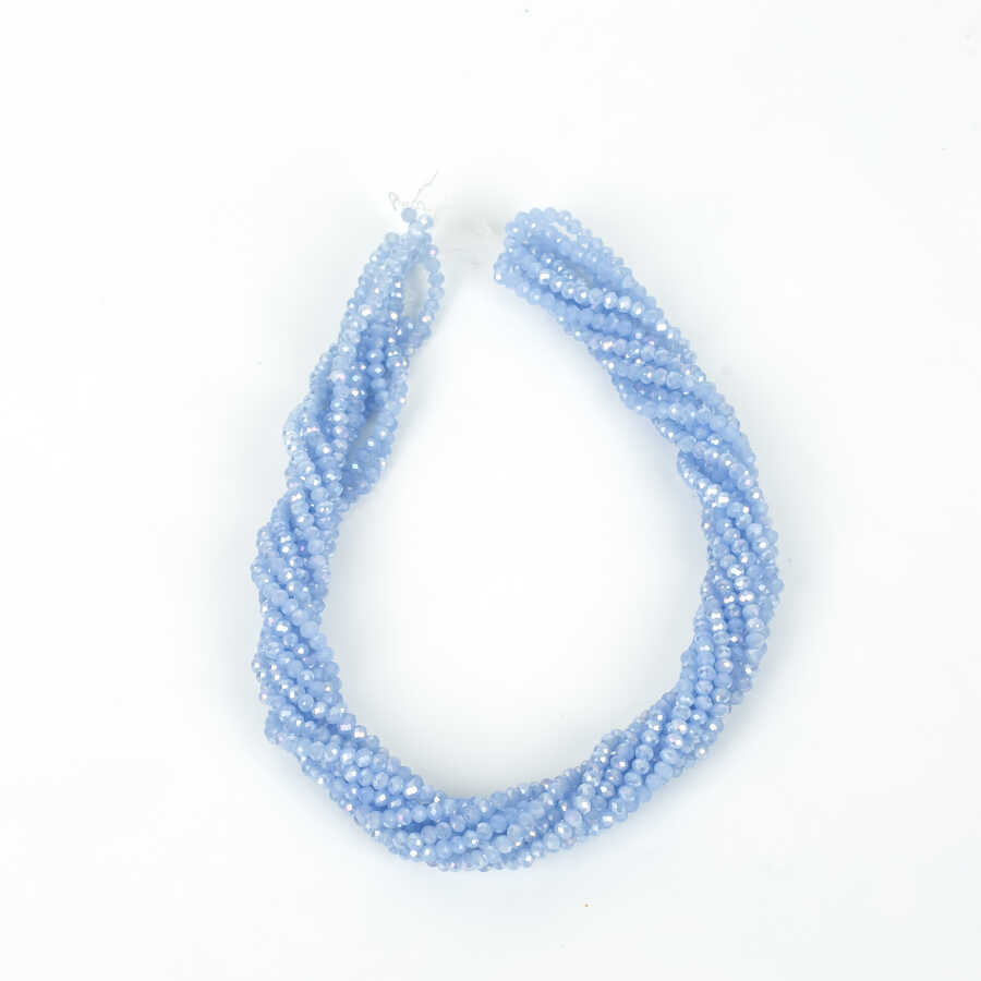 1 Dizi (130-135 Adet) - 3 mm Yassı Kristal Cam Boncuk Dizisi Mat Janjanlı Buzlu Mavi Renk 1.Kalite