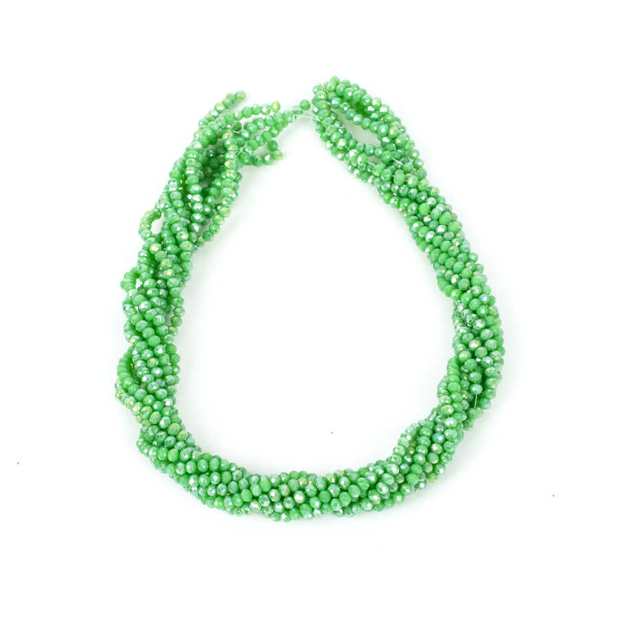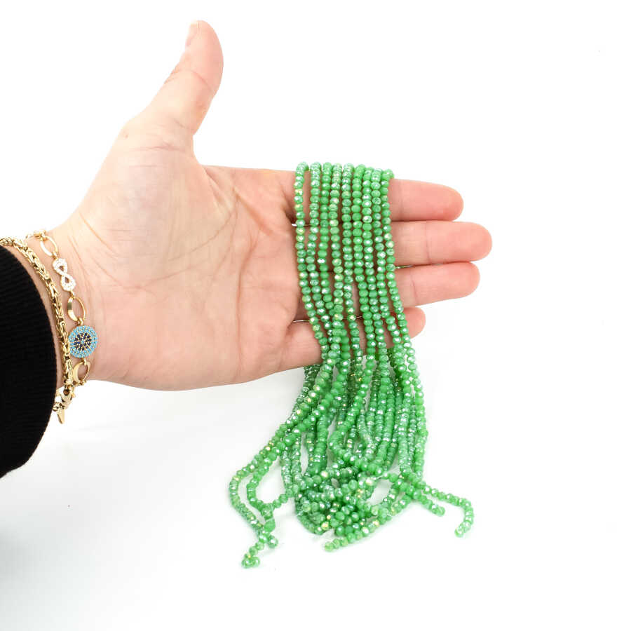 1 Dizi (130-135 Adet) - 3 mm Yassı Kristal Cam Boncuk Dizisi Mat Janjanlı Fıstık Yeşil Renk 1.Kalite