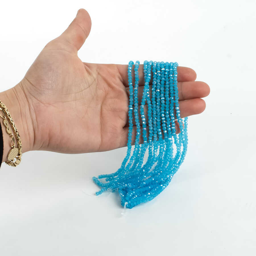 1 Dizi (130-135 Adet) - 3 mm Yassı Kristal Cam Boncuk Dizisi Mat Janjanlı Gökmavi Renk 1.Kalite
