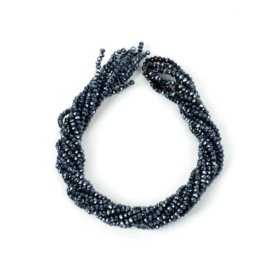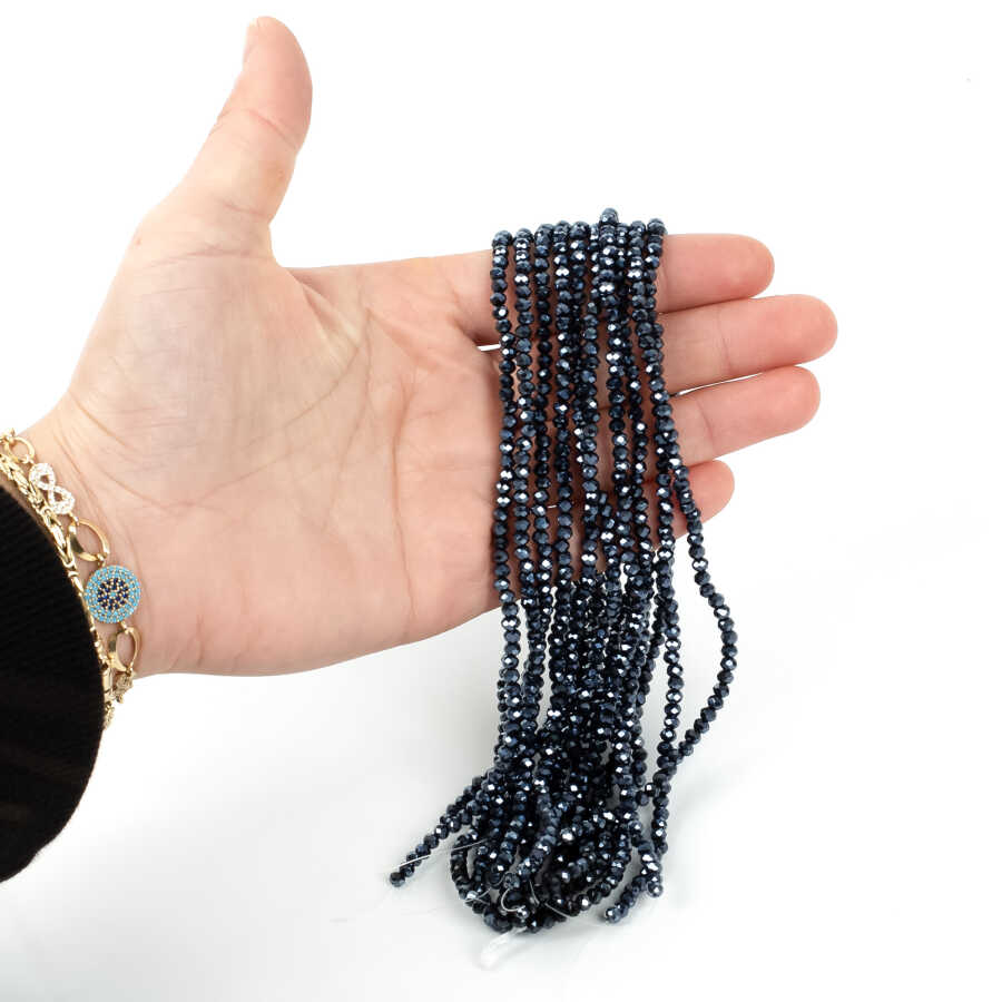 1 Dizi (130-135 Adet) - 3 mm Yassı Kristal Cam Boncuk Dizisi Mat Janjanlı Hematit Renk 1.Kalite