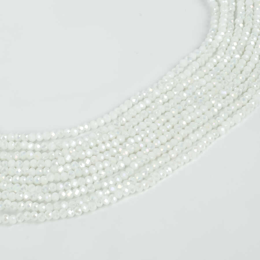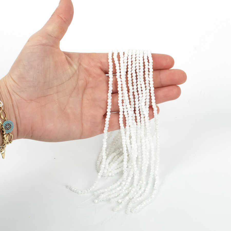 1 Dizi (130-135 Adet) - 3 mm Yassı Kristal Cam Boncuk Dizisi Mat Janjanlı Kar Beyaz Renk 1.Kalite