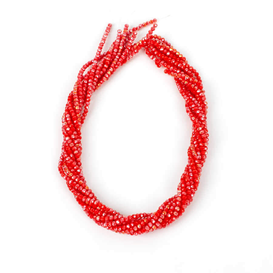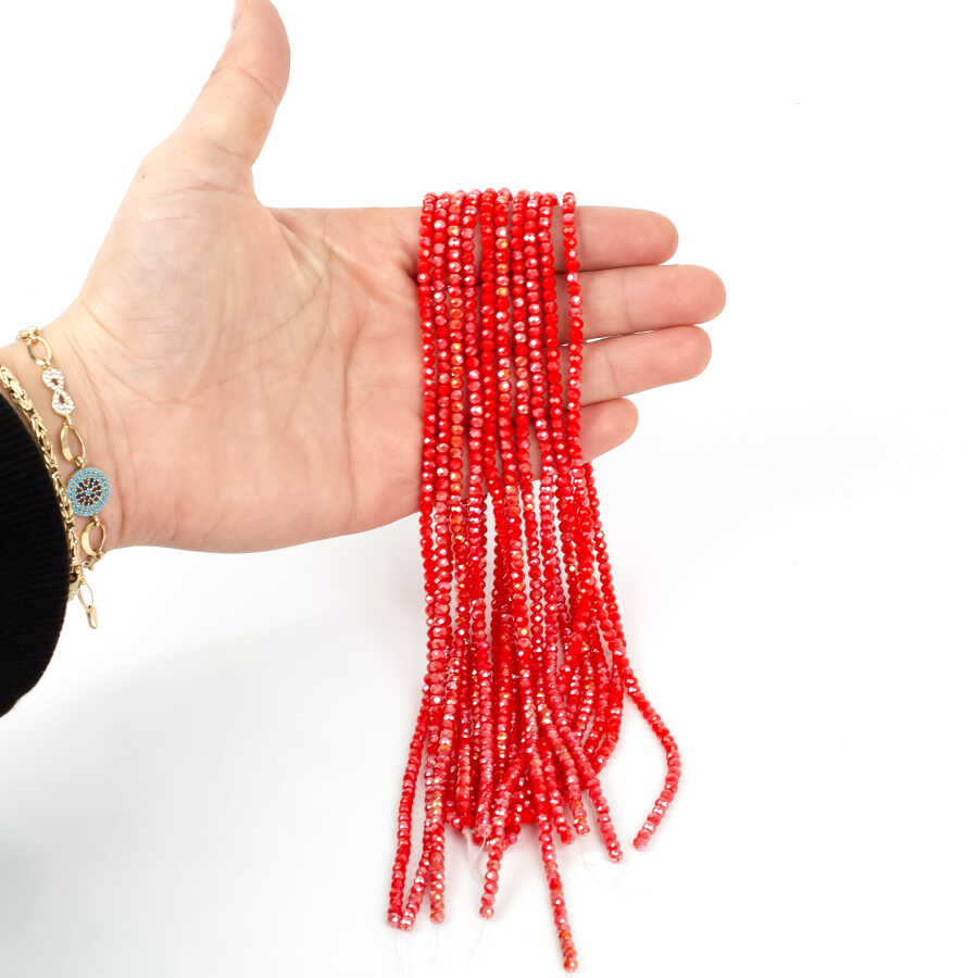 1 Dizi (130-135 Adet) - 3 mm Yassı Kristal Cam Boncuk Dizisi Mat Janjanlı Kırmızı Renk 1.Kalite