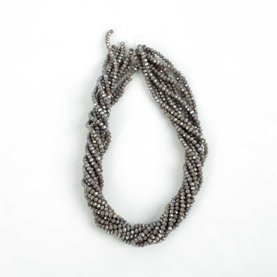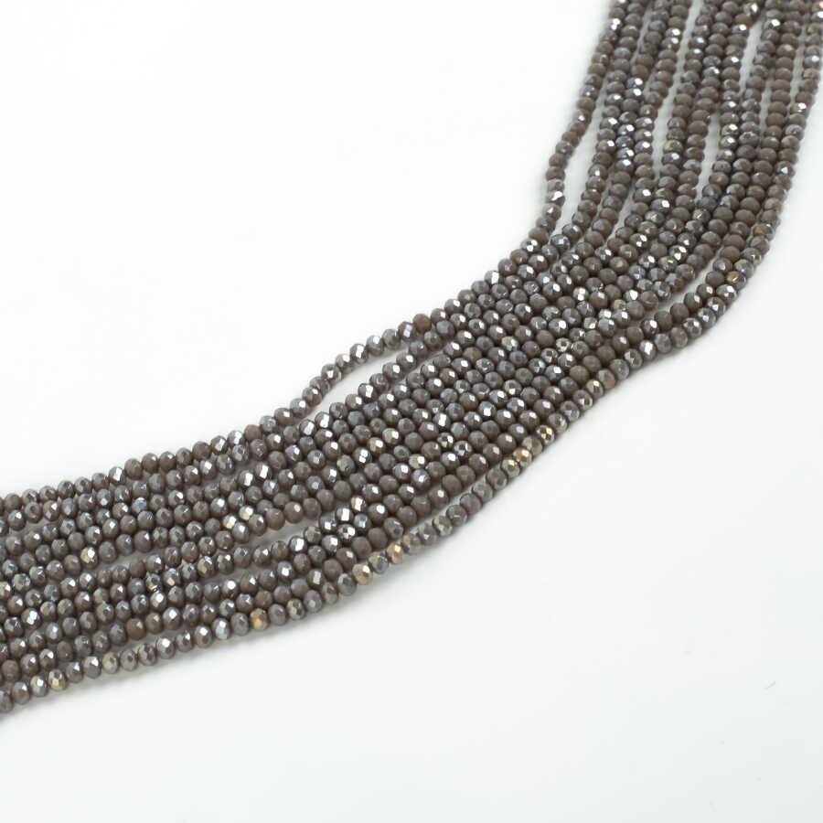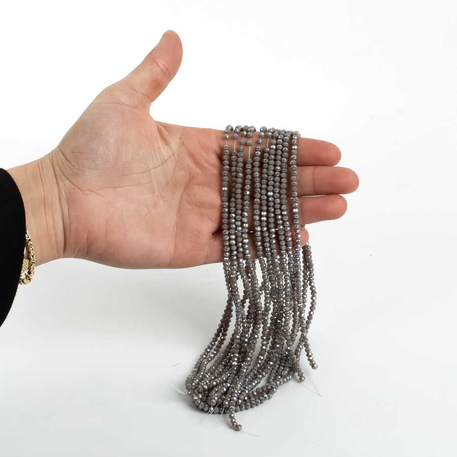 1 Dizi (130-135 Adet) - 3 mm Yassı Kristal Cam Boncuk Dizisi Mat Janjanlı Koyu Füme Renk 1.Kalite