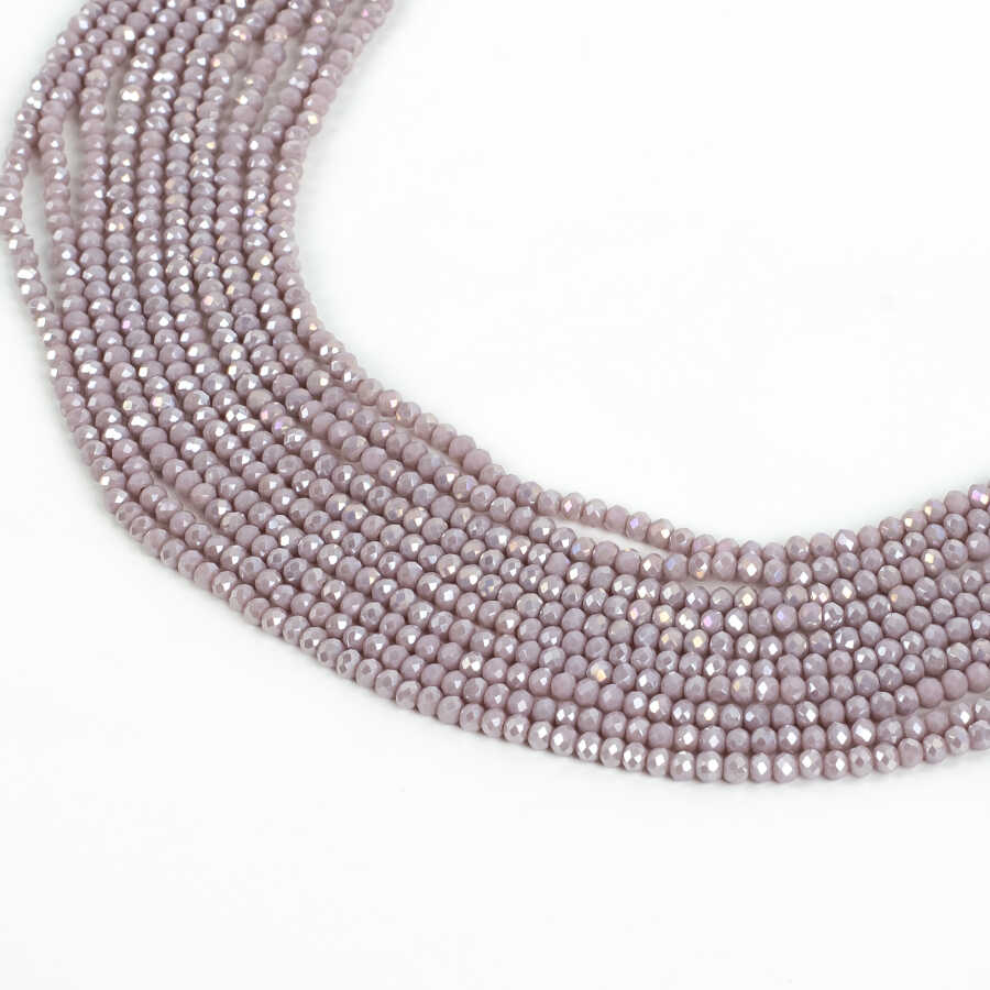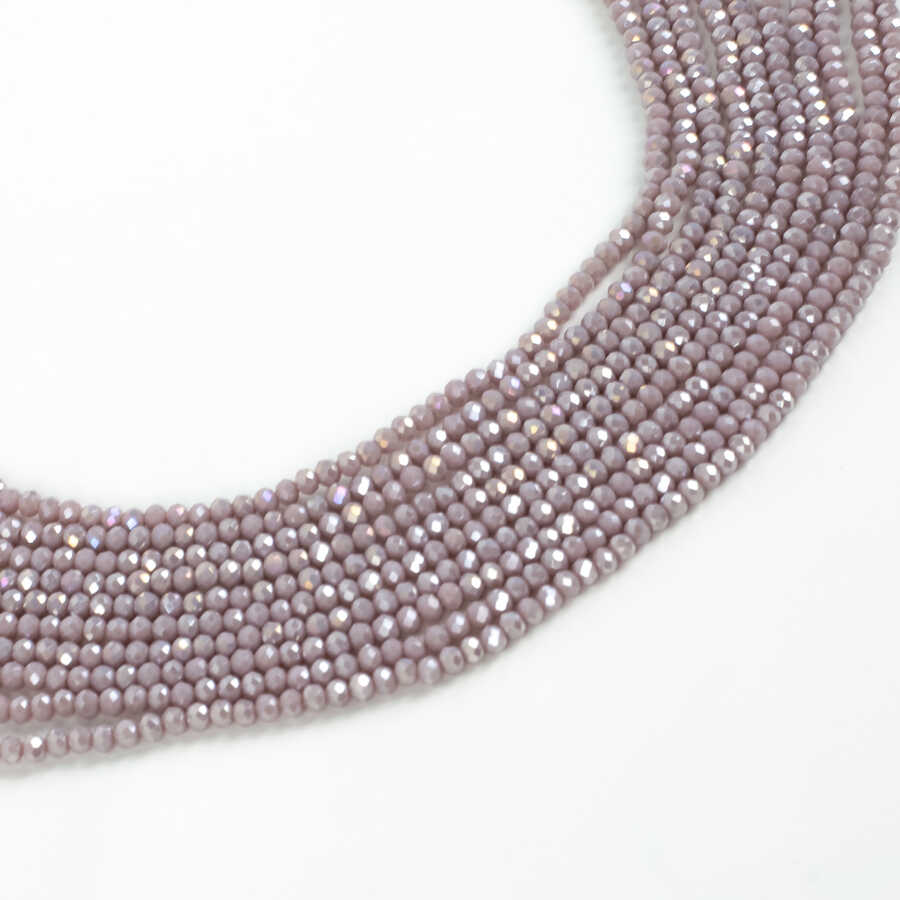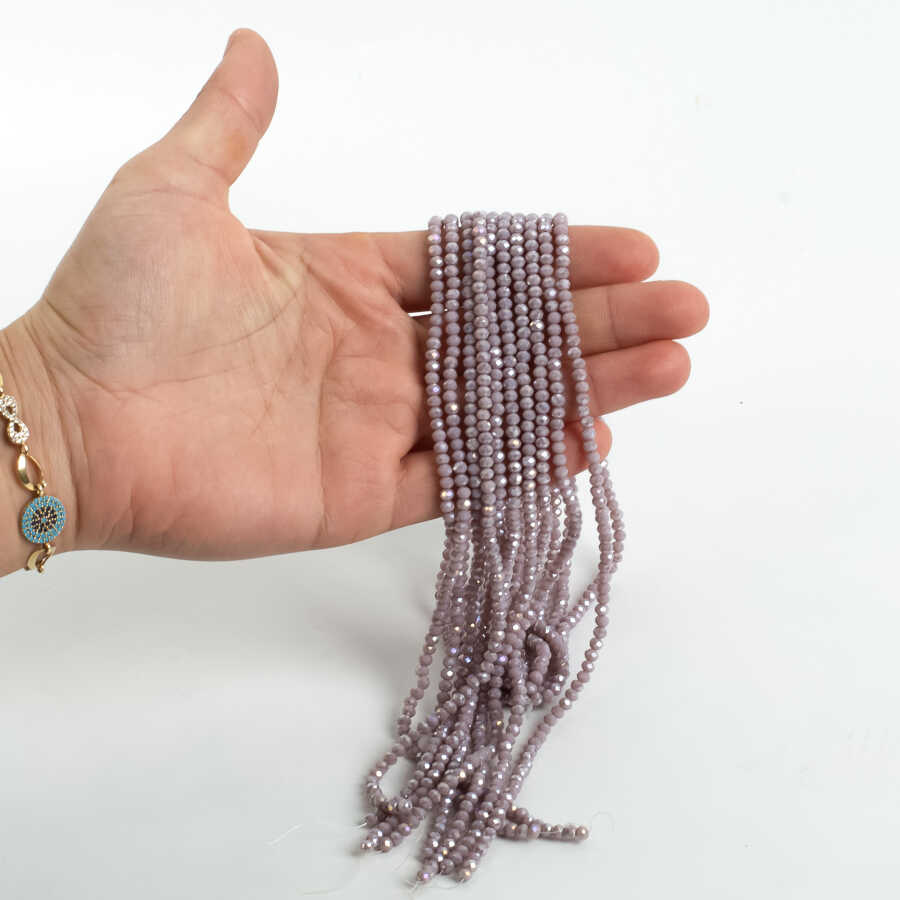 1 Dizi (130-135 Adet) - 3 mm Yassı Kristal Cam Boncuk Dizisi Mat Janjanlı Lila Renk 1.Kalite