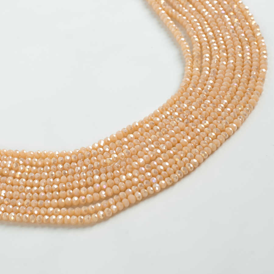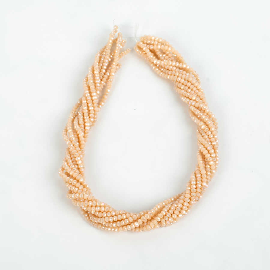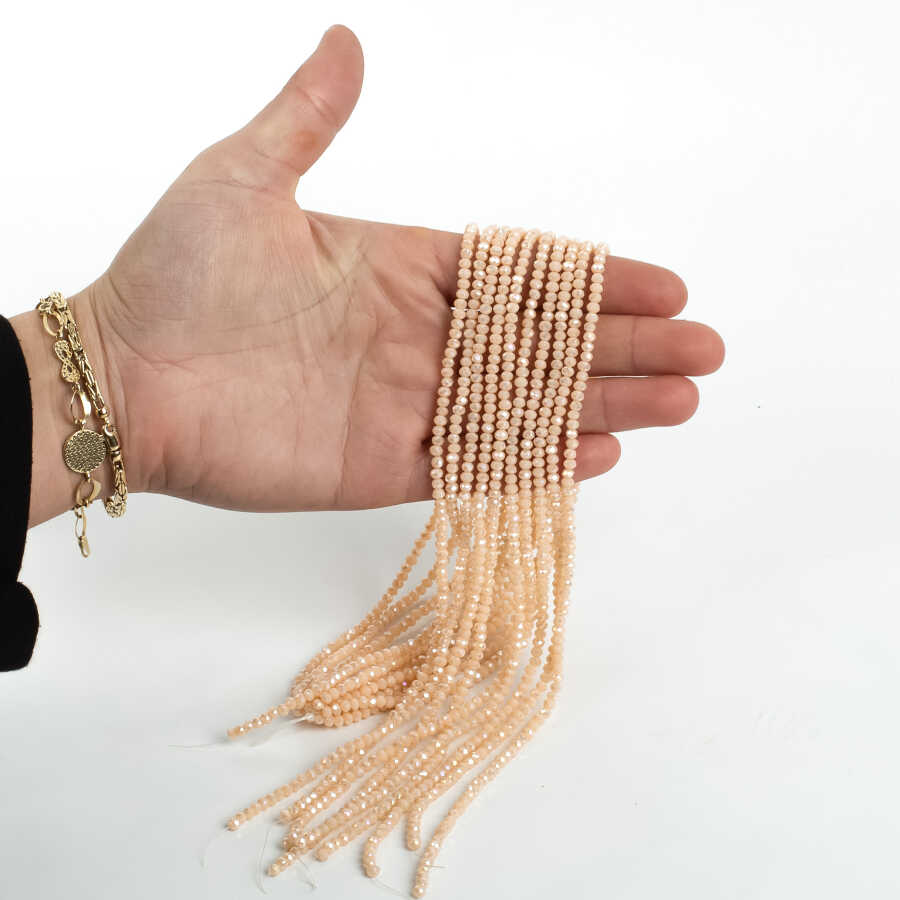 1 Dizi (130-135 Adet) - 3 mm Yassı Kristal Cam Boncuk Dizisi Mat Janjanlı Pudra Pembe Renk 1.Kalite