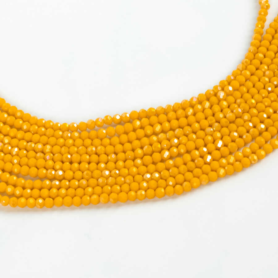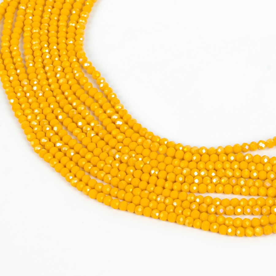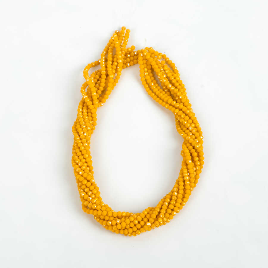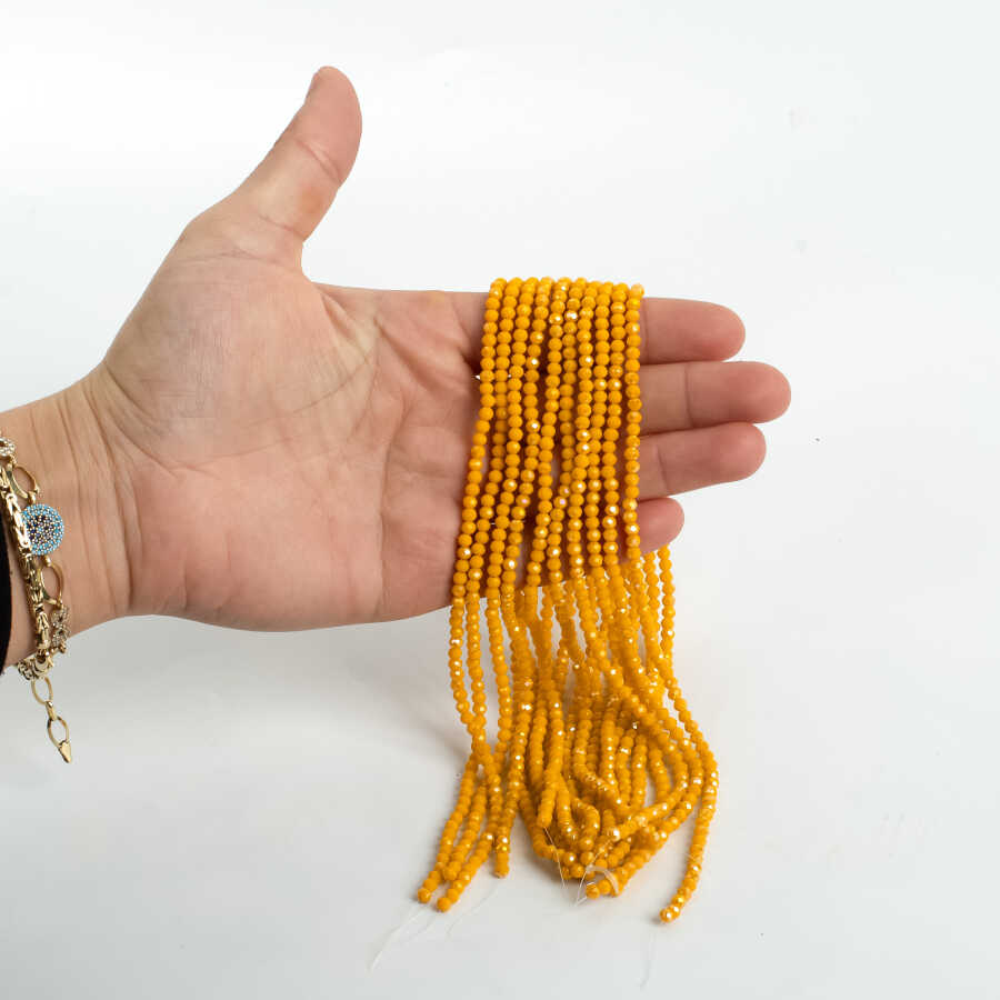 1 Dizi (130-135 Adet) - 3 mm Yassı Kristal Cam Boncuk Dizisi Mat Janjanlı Koyu Sarı Renk 1.Kalite
