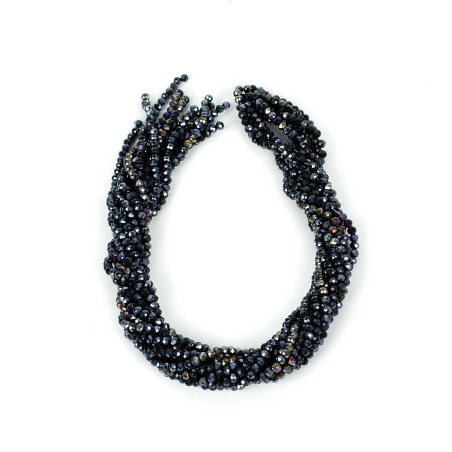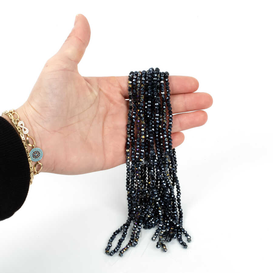 1 Dizi (130-135 Adet)- 3 mm Yassı Kristal Cam Boncuk Dizisi Mat Janjanlı Siyah Hematit Renk 1.Kalite