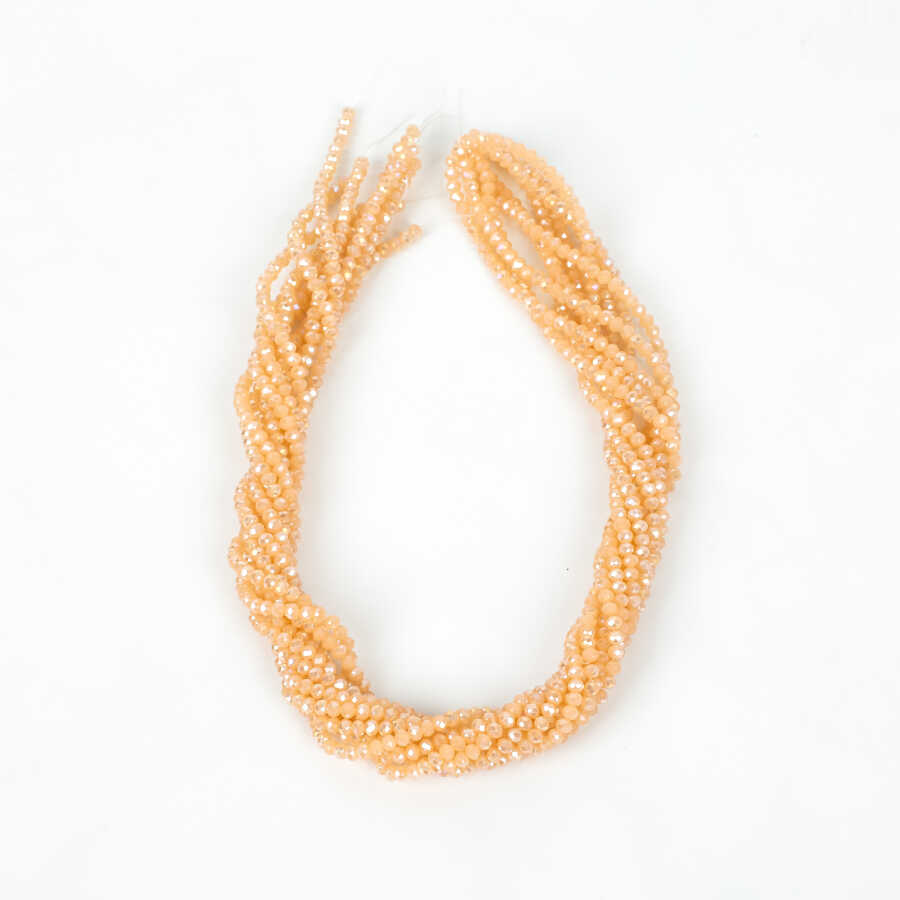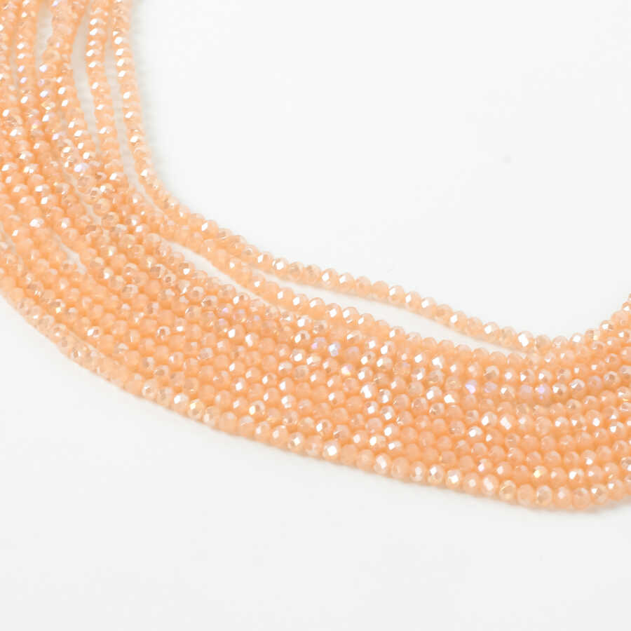 1 Dizi (130-135 Adet) - 3 mm Yassı Kristal Cam Boncuk Dizisi Mat Janjanlı Somon Renk 1.Kalite