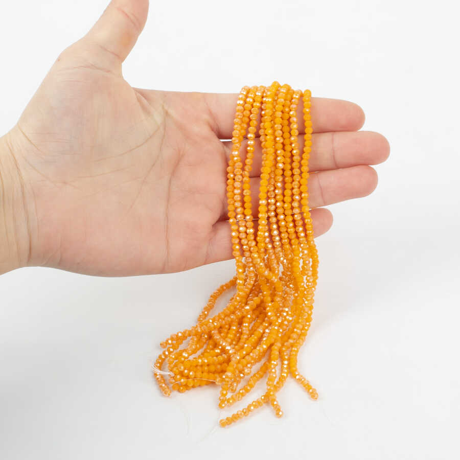 1 Dizi (130-135 Adet) - 3 mm Yassı Kristal Cam Boncuk Dizisi Mat Janjanlı Turuncu Renk 1.Kalite