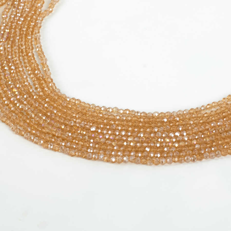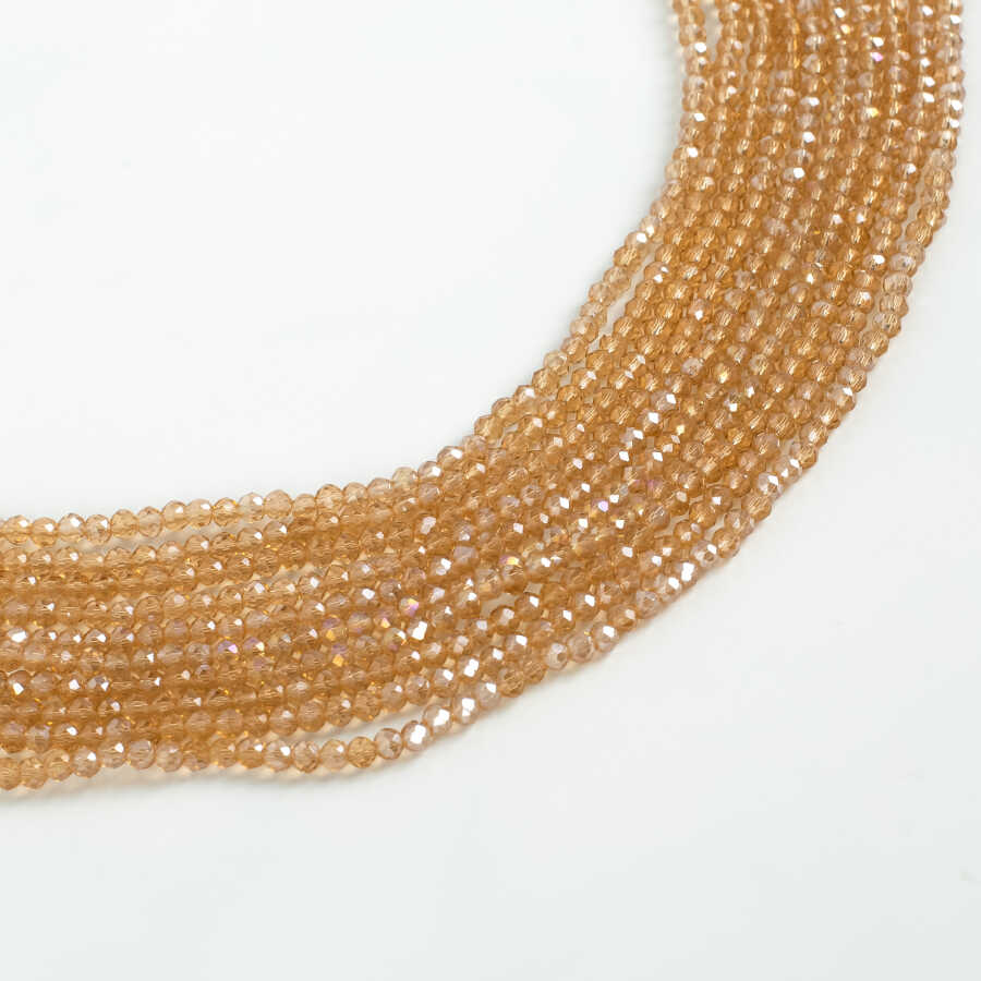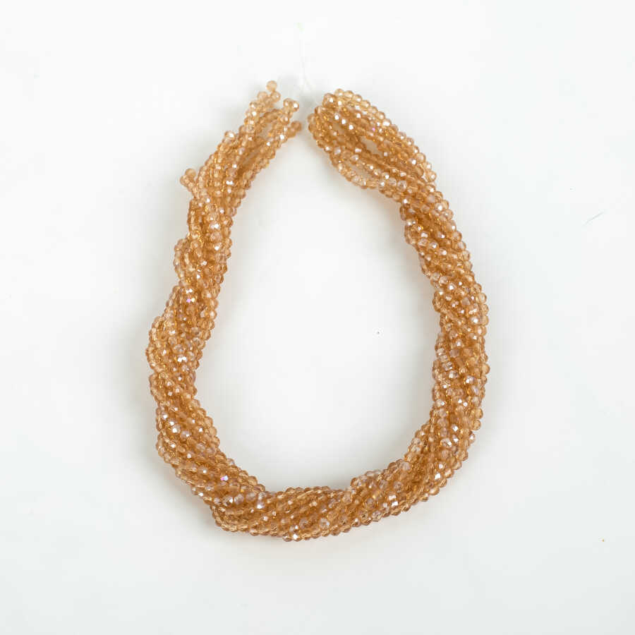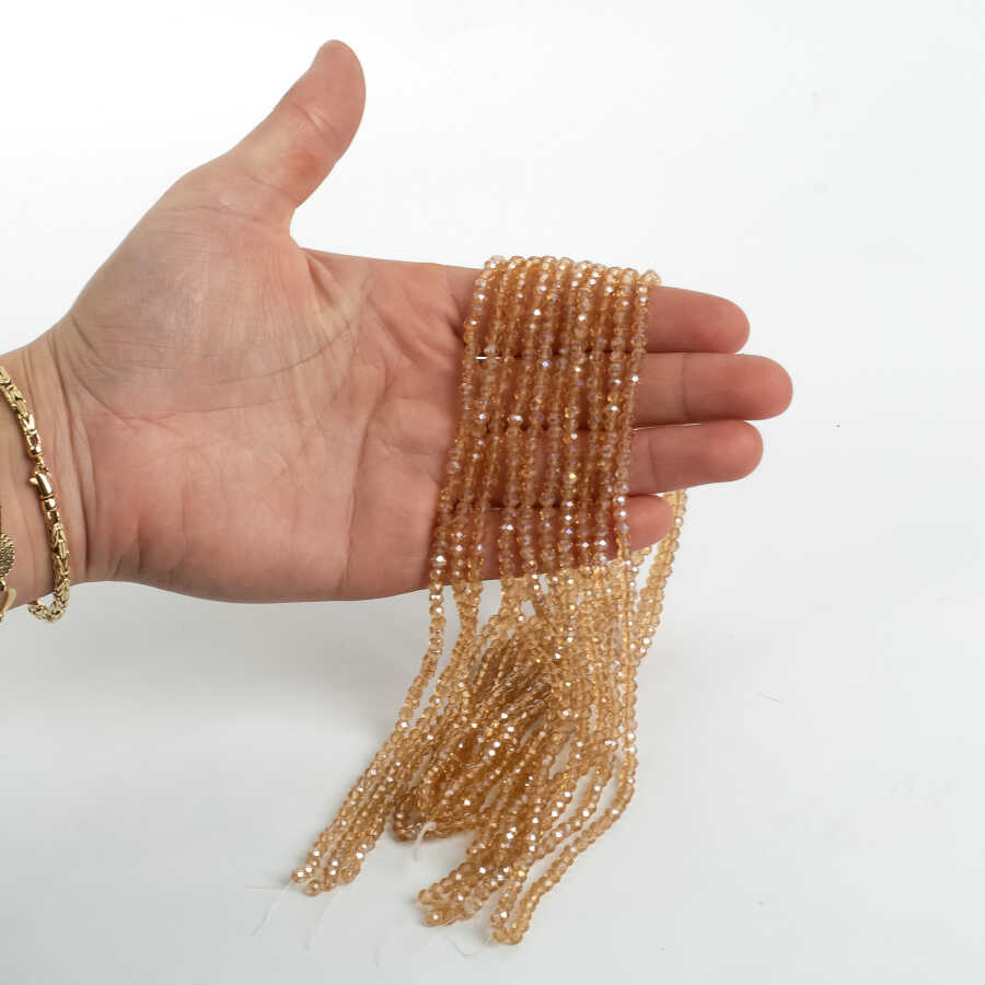 1 Dizi (130-135 Adet) - 3 mm Yassı Kristal Cam Boncuk Dizisi Şeffaf Janjanlı Bej Renk 1.Kalite