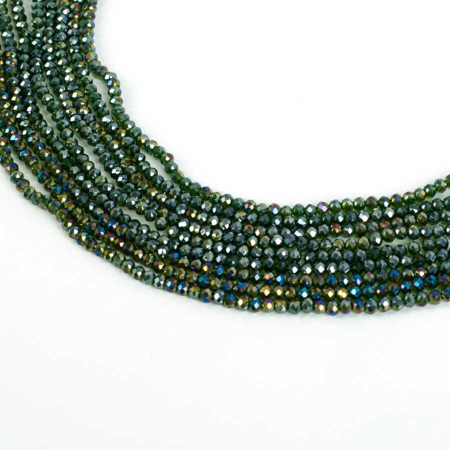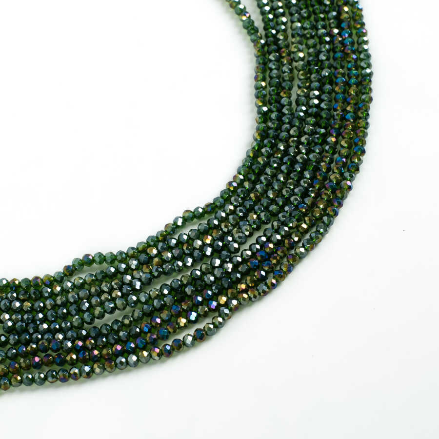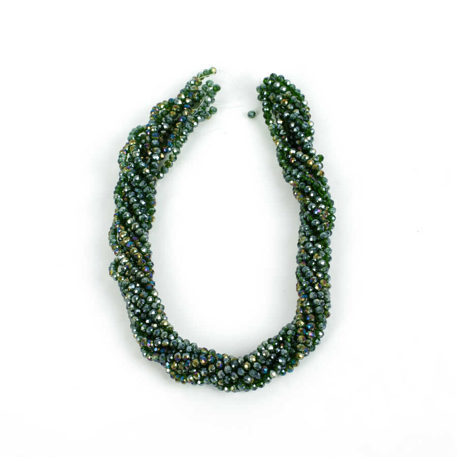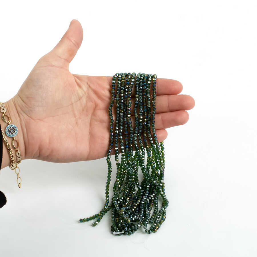 1 Dizi (130-135 Adet)- 3 mm Yassı Kristal Cam Boncuk Dizisi Şeffaf Janjanlı Koyu Yeşil Renk 1.Kalite
