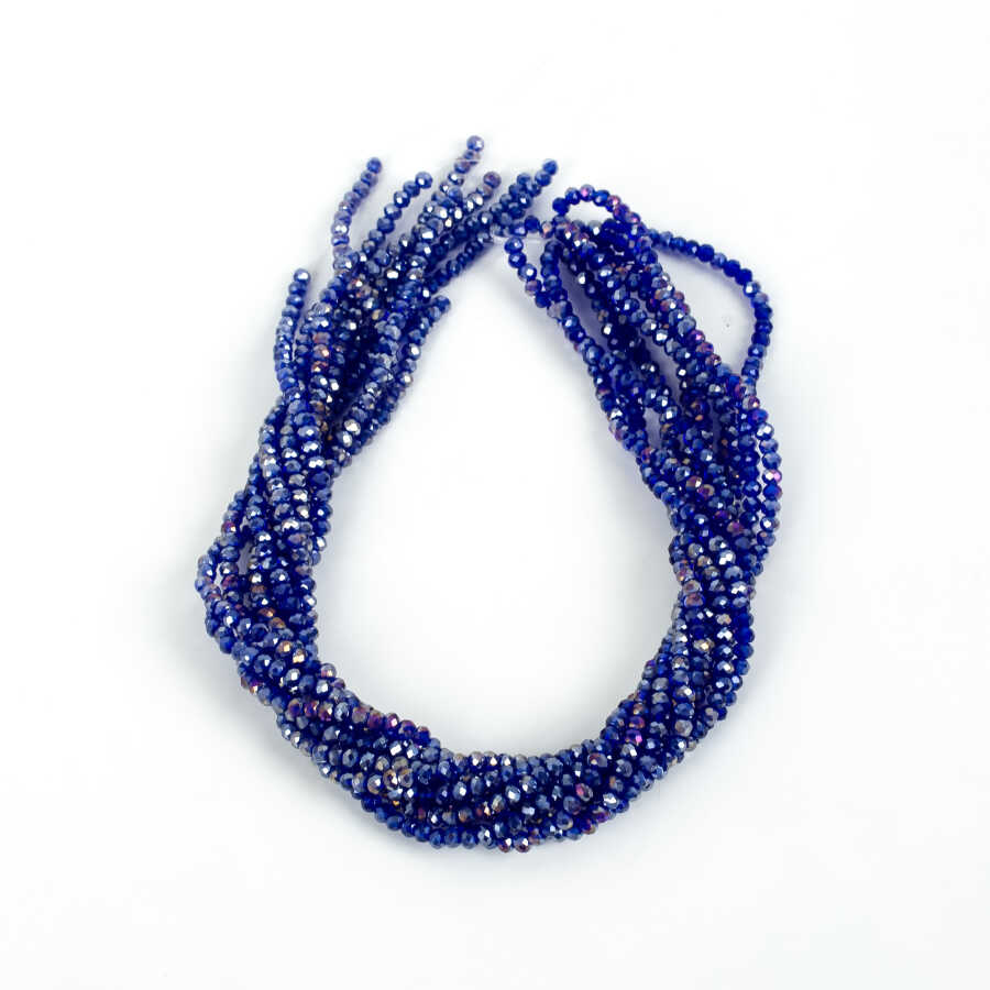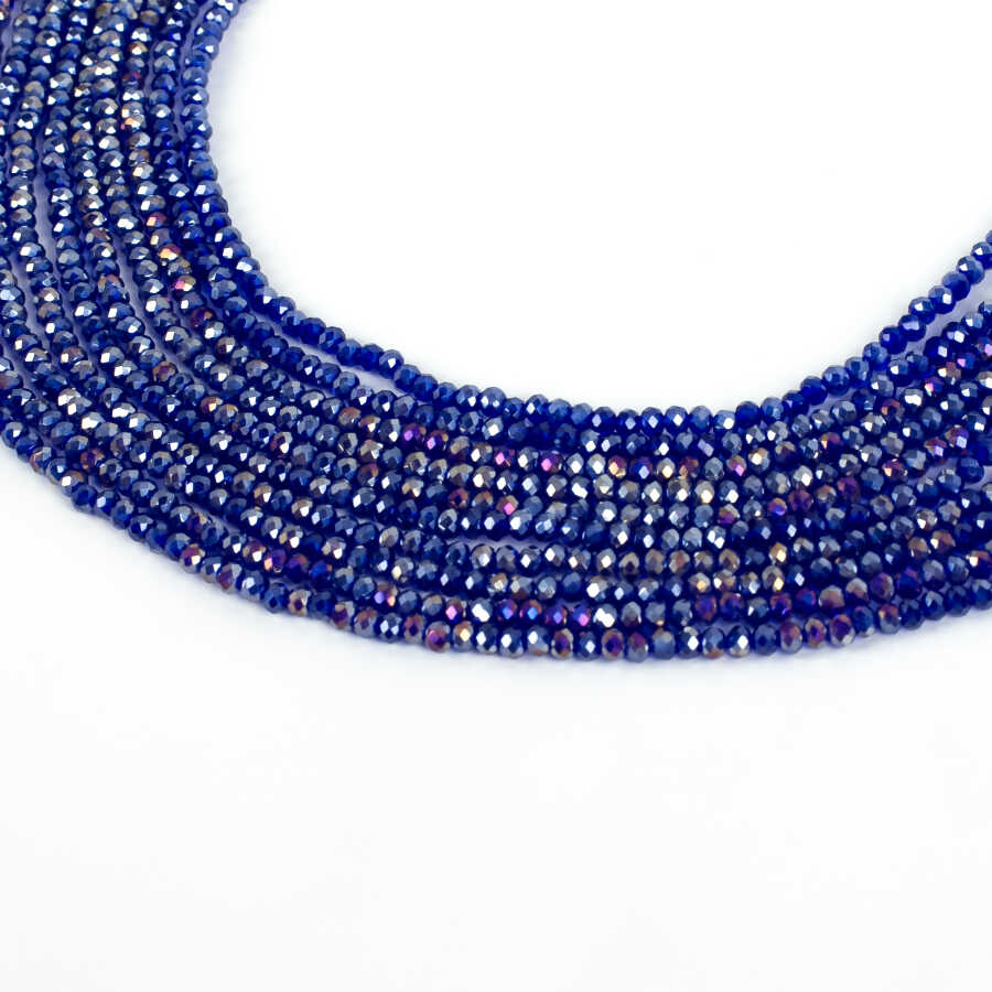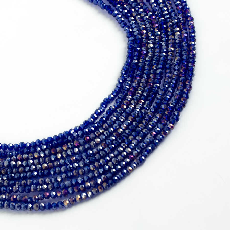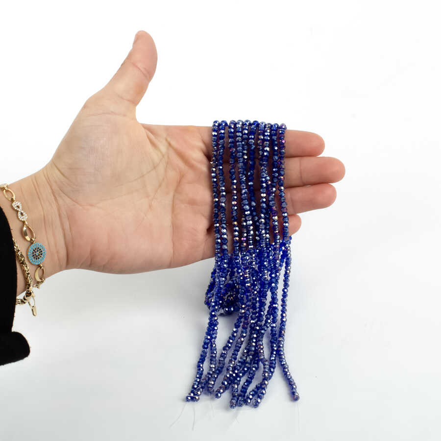 1 Dizi (130-135 Adet)- 3 mm Yassı Kristal Cam Boncuk Dizisi Şeffaf Janjanlı Deniz Mavi Renk 1.Kalite
