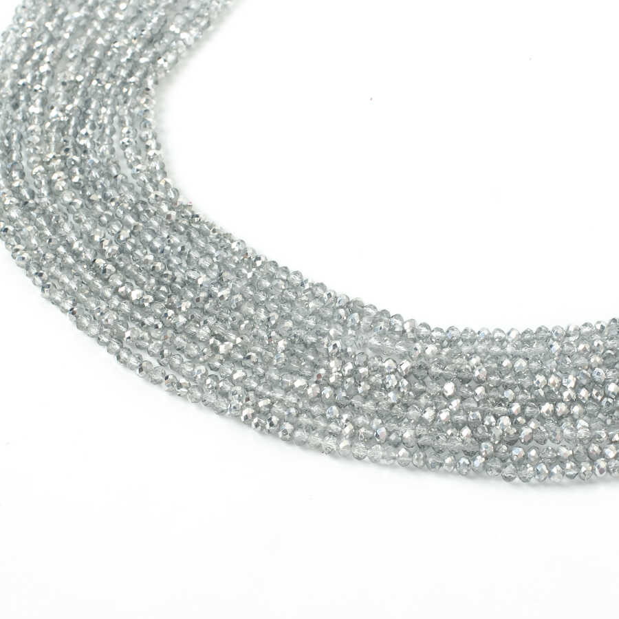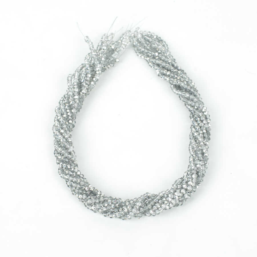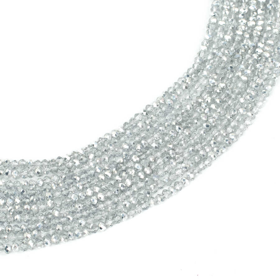 1 Dizi (130-135 Adet) - 3 mm Yassı Kristal Cam Boncuk Dizisi Şeffaf Janjanlı Gümüş Renk 1.Kalite