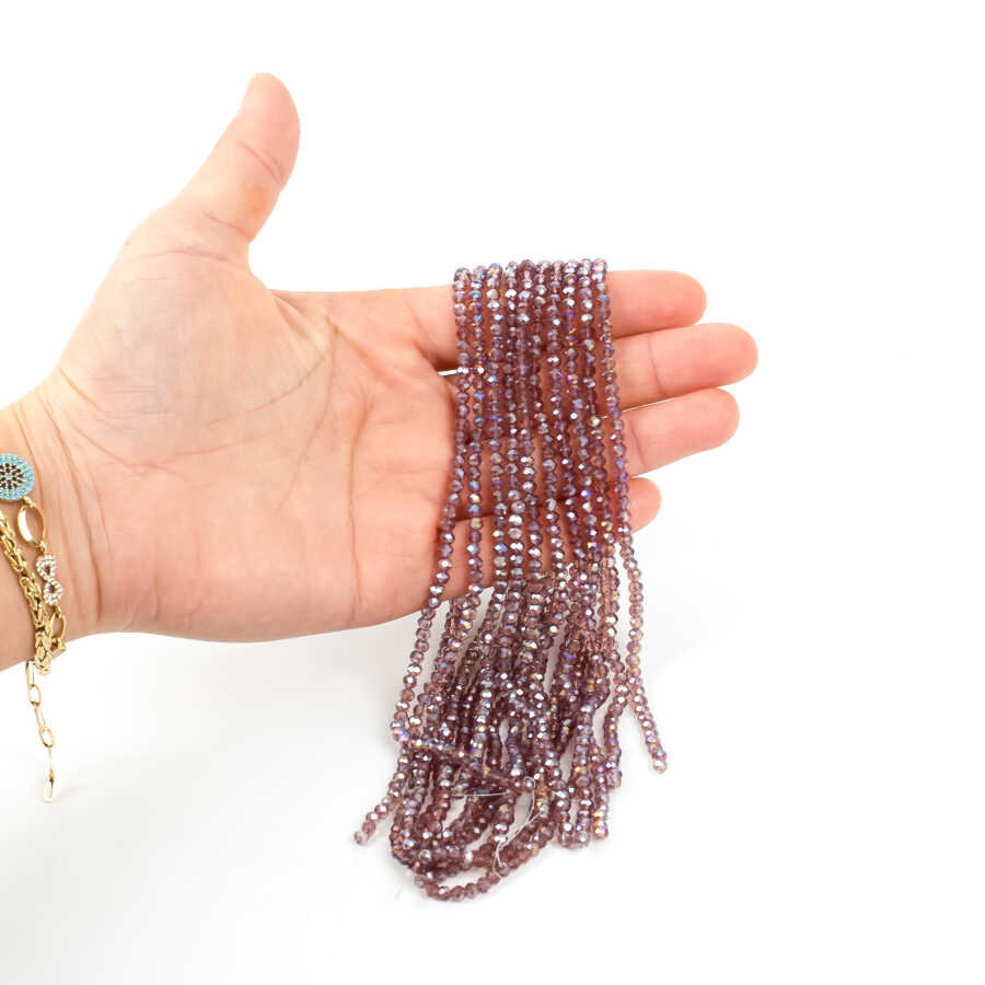 1 Dizi (130-135 Adet)- 3 mm Yassı Kristal Cam Boncuk Dizisi Şeffaf Janjanlı Mor Renk 1.Kalite