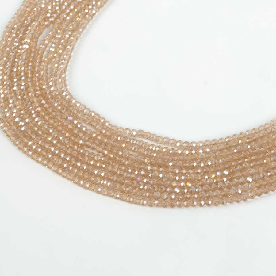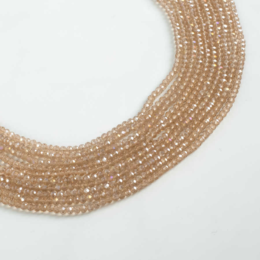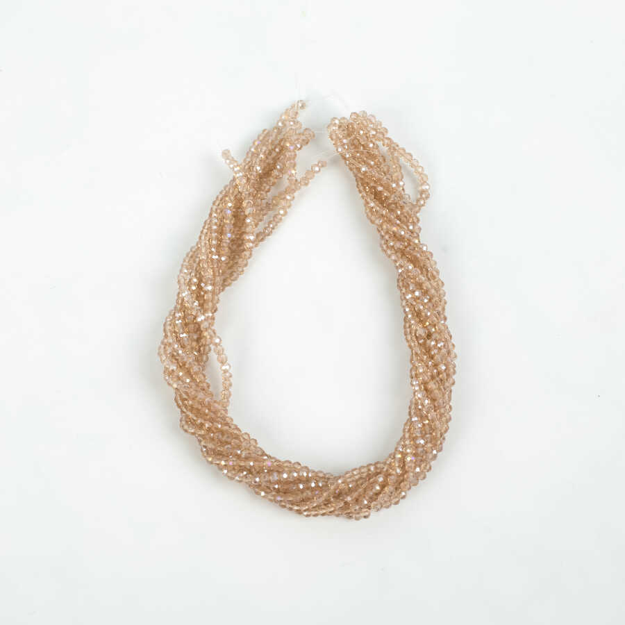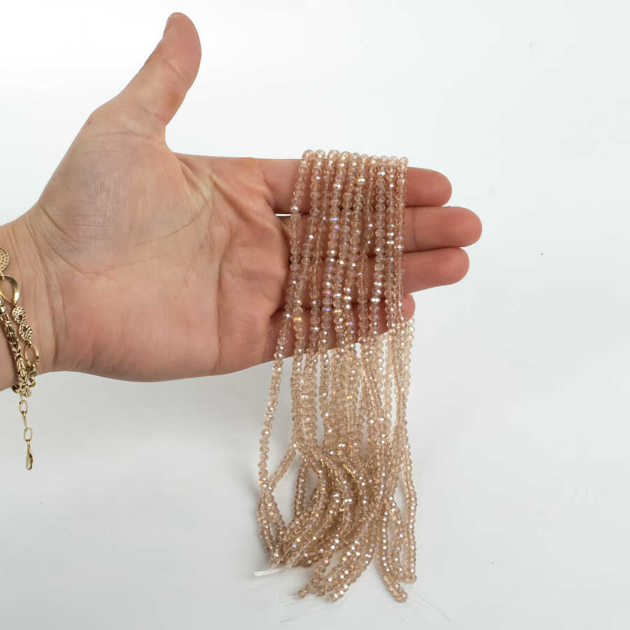 1 Dizi (130-135 Adet) - 3 mm Yassı Kristal Cam Boncuk Dizisi Şeffaf Janjanlı Şampanya Renk