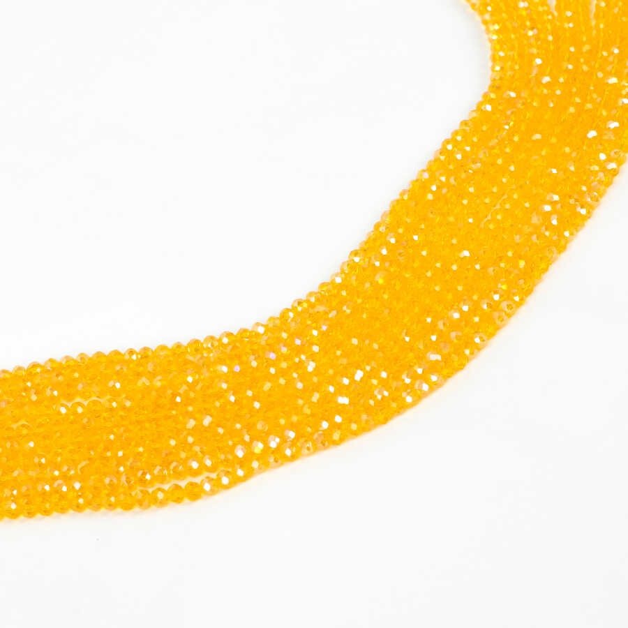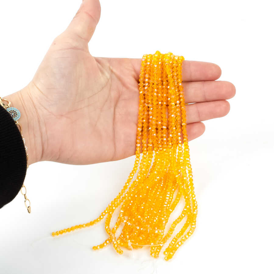 1 Dizi (130-135 Adet)- 3 mm Yassı Kristal Cam Boncuk Dizisi Şeffaf Janjanlı Turuncu Renk 1.Kalite