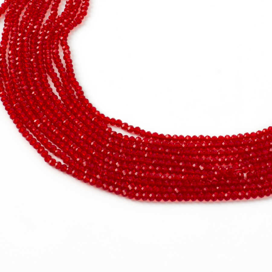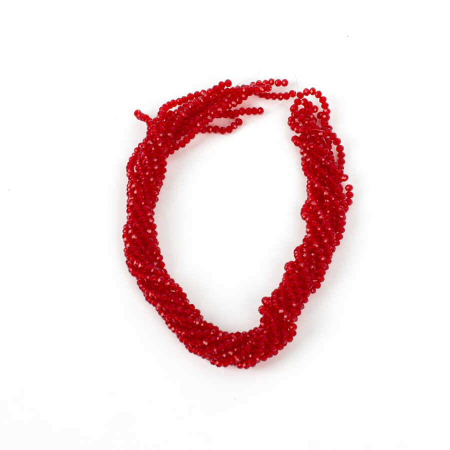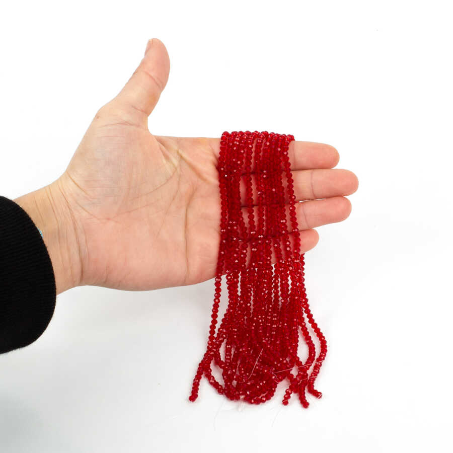 1 Dizi (130-135 Adet) - 3 mm Yassı Kristal Cam Boncuk Dizisi Şeffaf Kırmızı Renk 1.Kalite