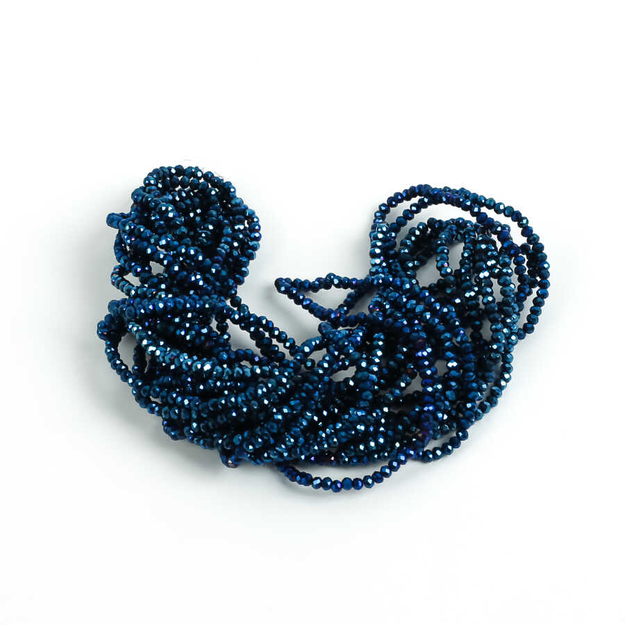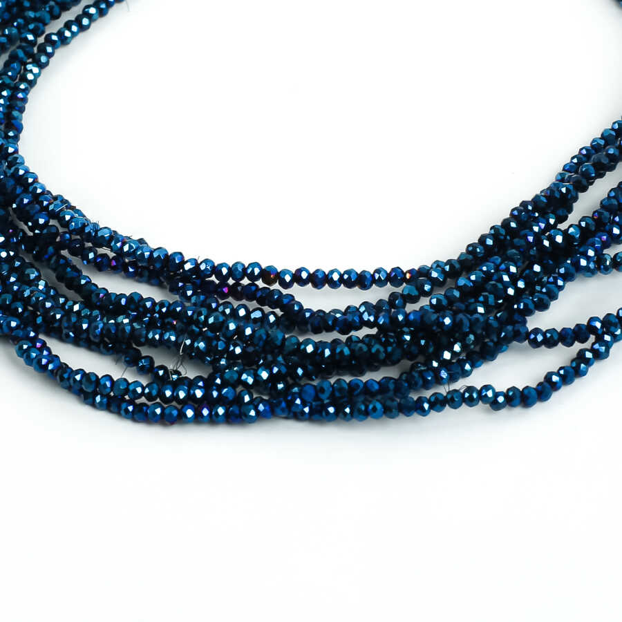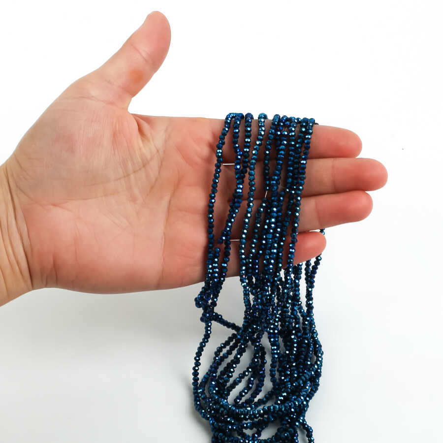1 Dizi (145-155 Adet) - 2 mm Yassı Kristal Cam Boncuk Dizisi Kaplama Mavi Renk 1.Kalite