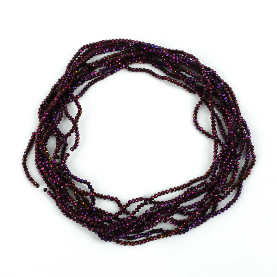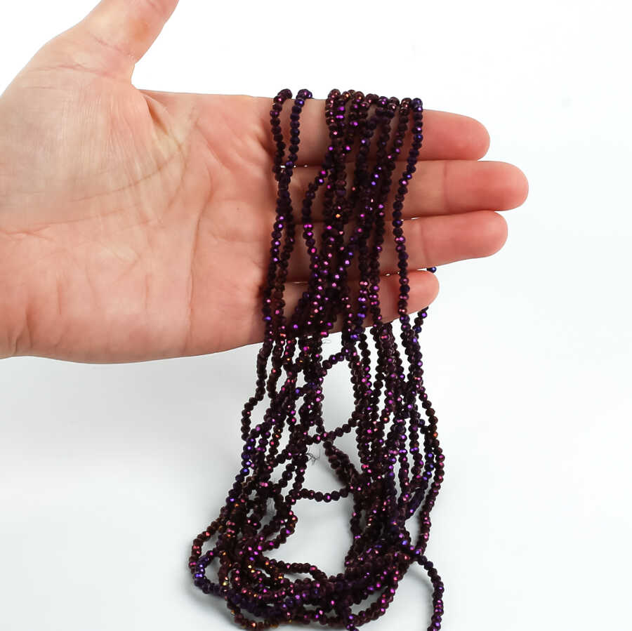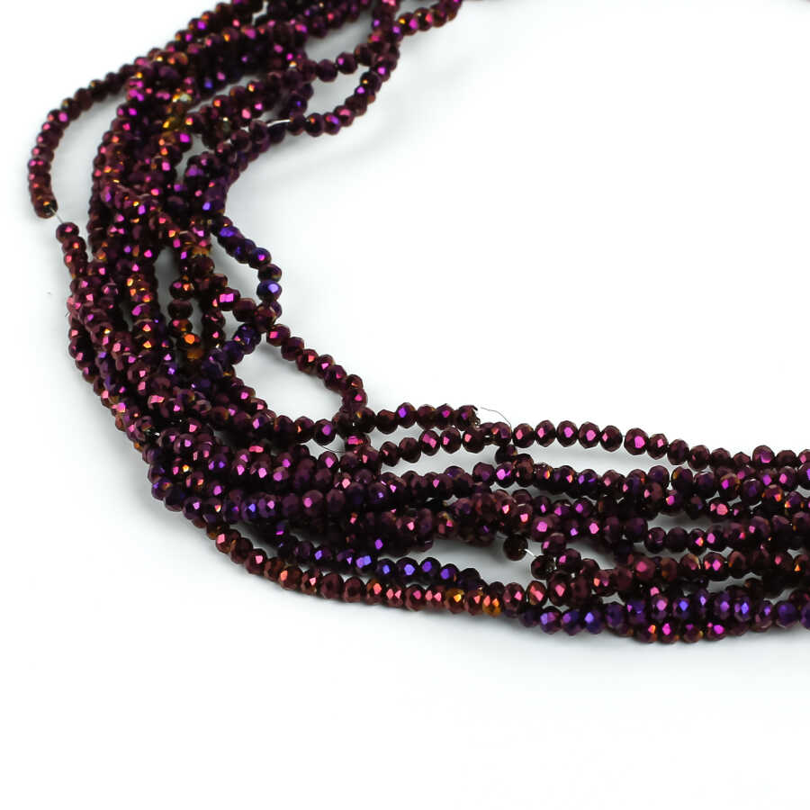 1 Dizi (145-155 Adet) - 2 mm Yassı Kristal Cam Boncuk Dizisi Kaplama Mor Renk 1.Kalite