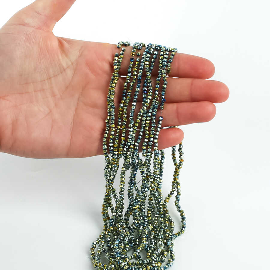 1 Dizi (145-155 Adet) - 2 mm Yassı Kristal Cam Boncuk Dizisi Kaplama Yeşil Renk 1.Kalite