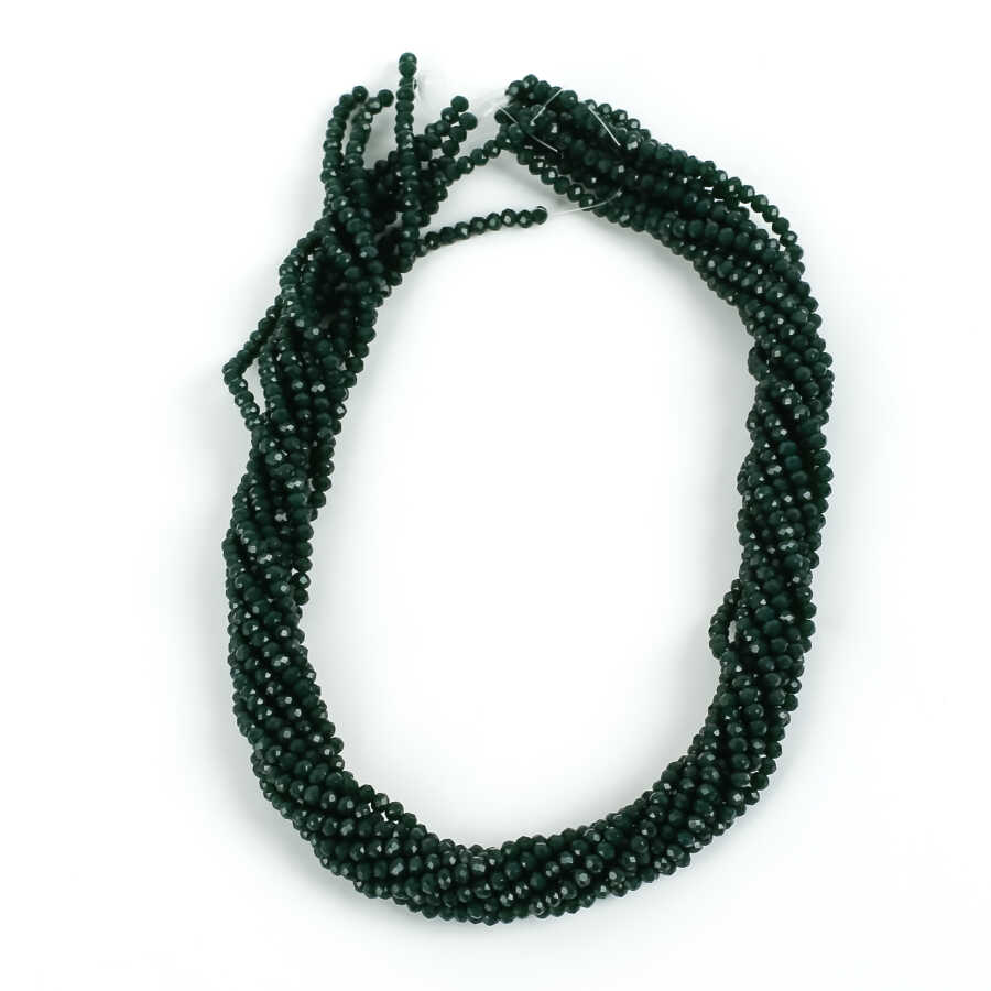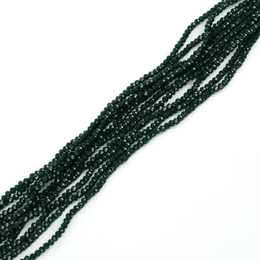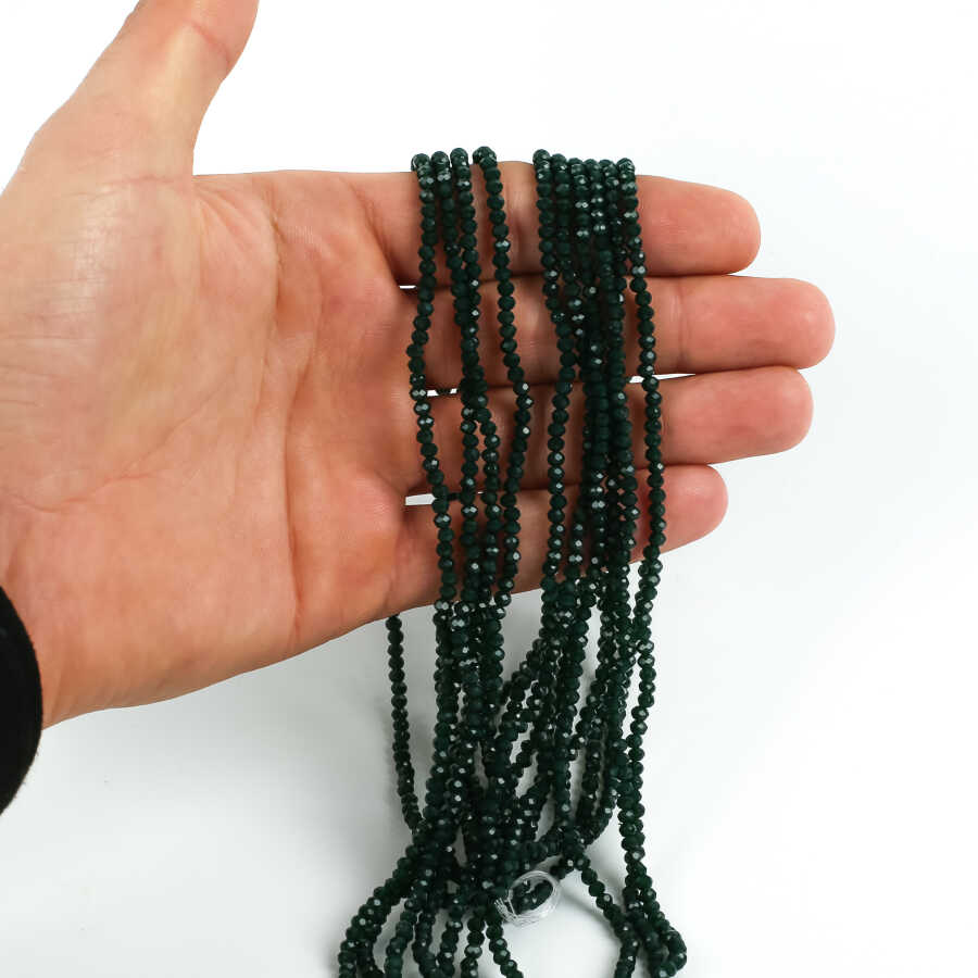 1 Dizi (145-155 Adet) - 2 mm Yassı Kristal Cam Boncuk Dizisi Mat Çok Koyu Yeşil Renk 1.Kalite