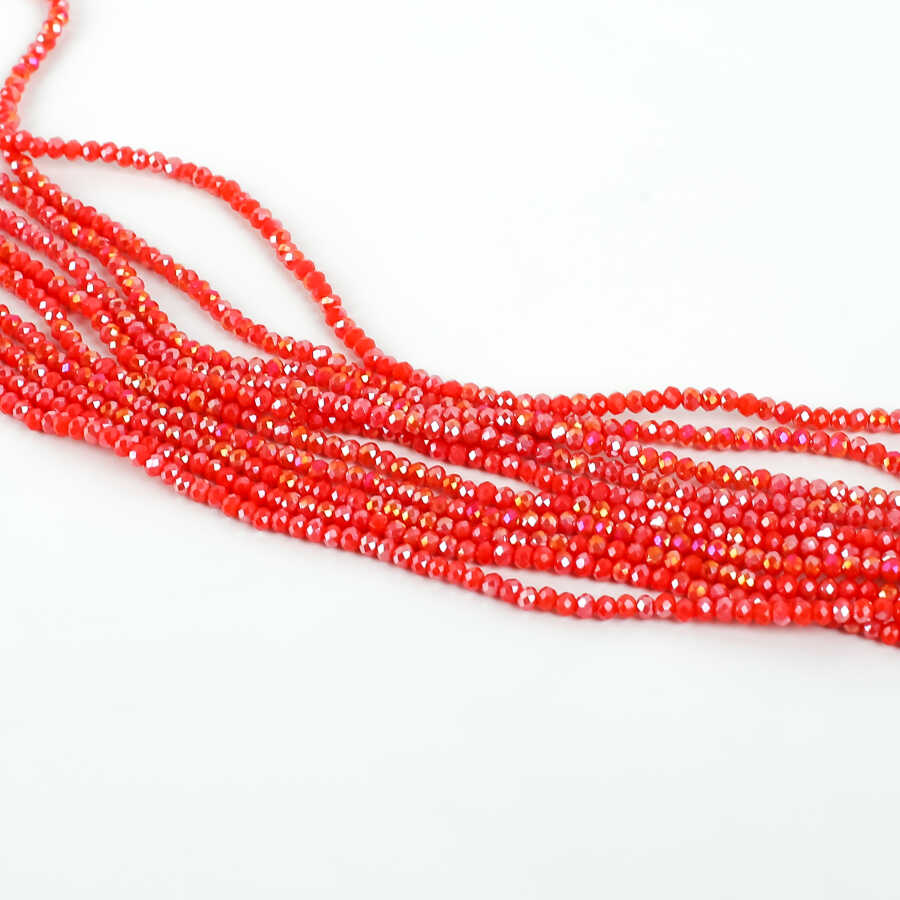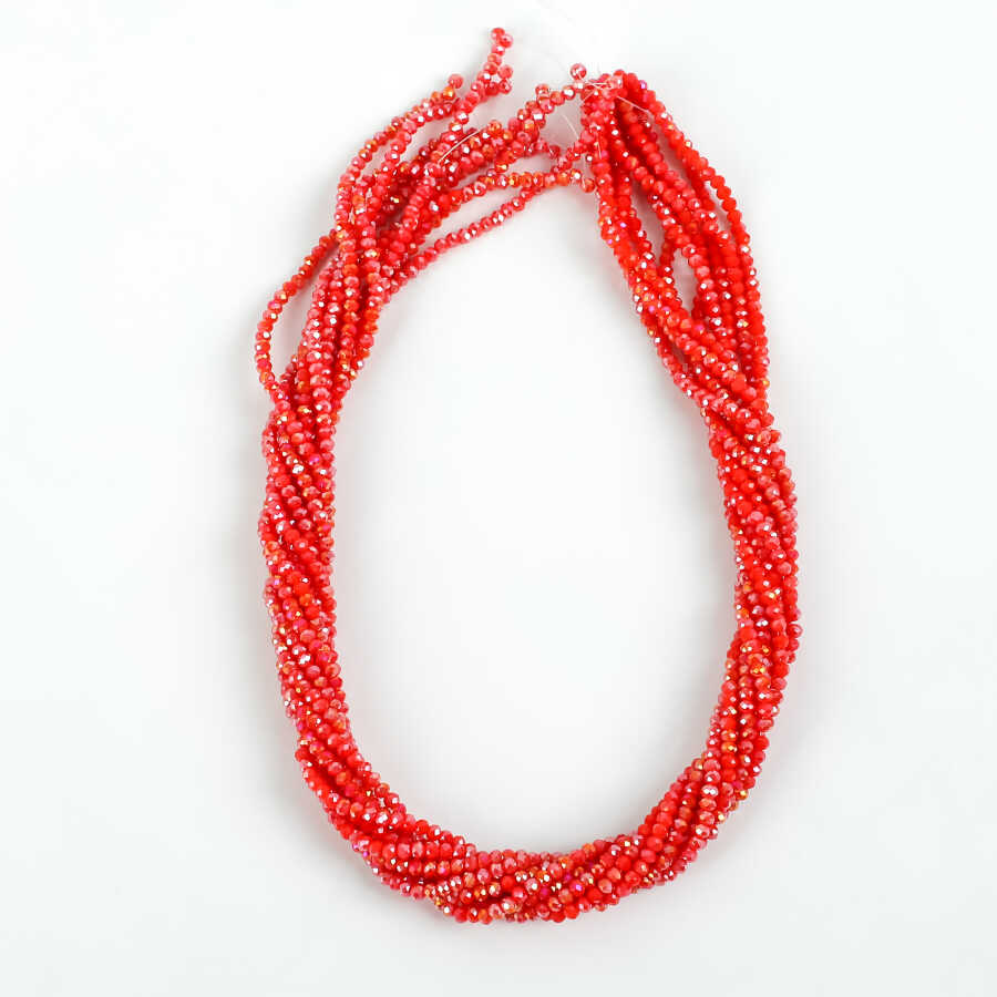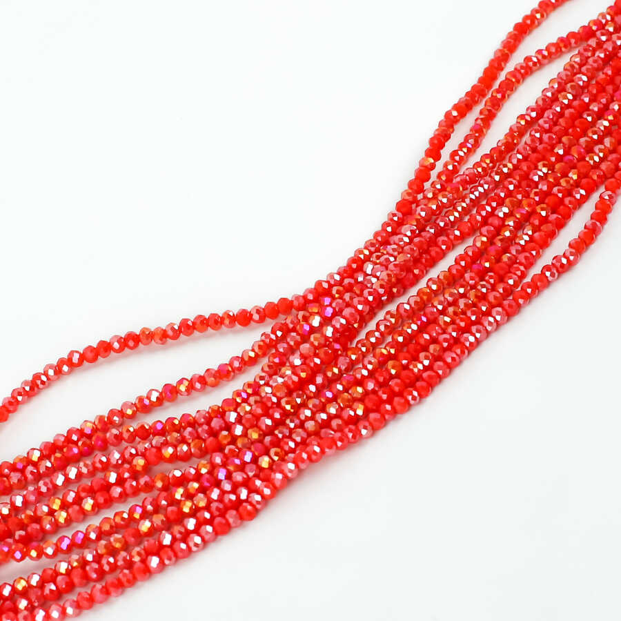 1 Dizi (145-155 Adet) - 2 mm Yassı Kristal Cam Boncuk Dizisi Mat Janjanlı Fuji Kırmızı Renk 1.Kalite