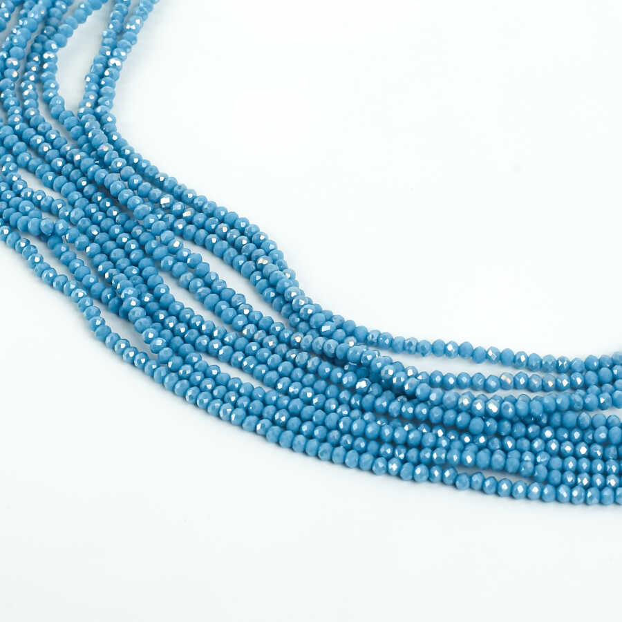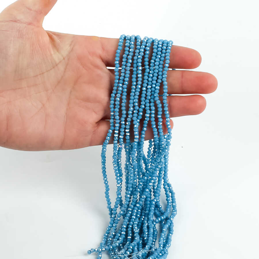 1 Dizi (145-155 Adet) - 2 mm Yassı Kristal Cam Boncuk Dizisi Mat Janjanlı Gökmavi Renk 1.Kalite