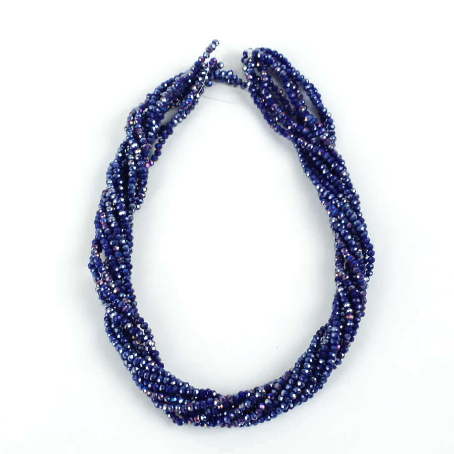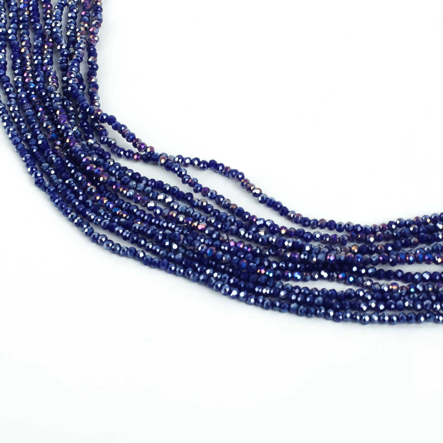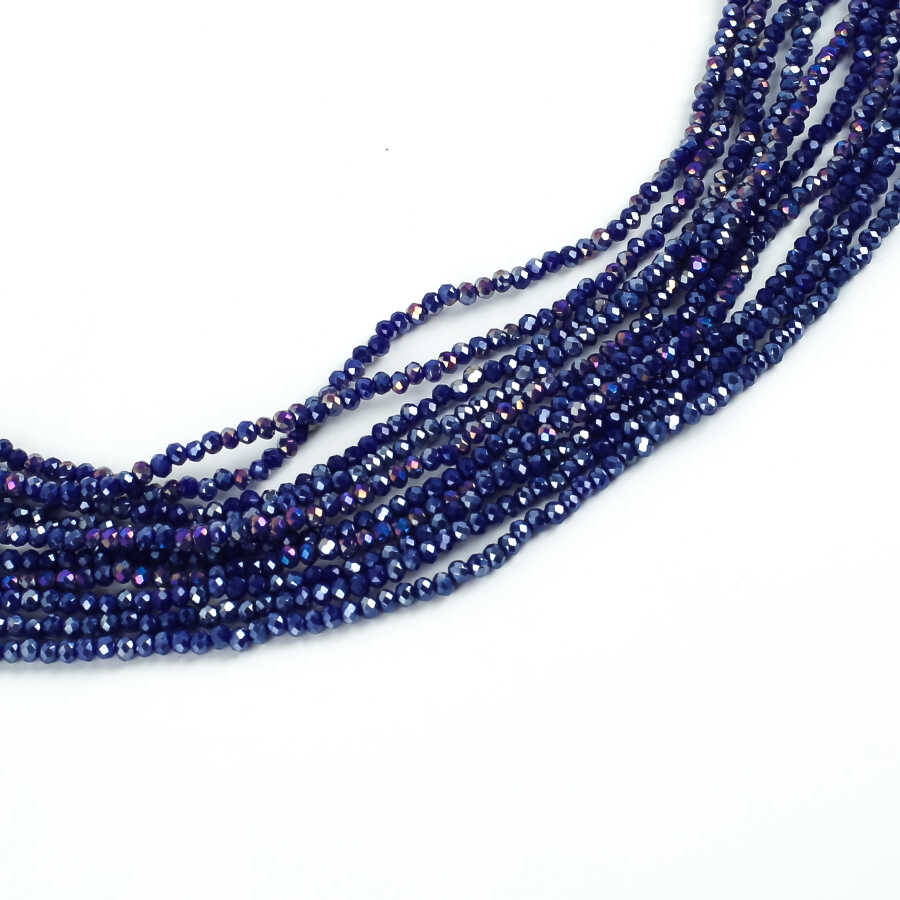 1 Dizi (145-155 Adet) - 2 mm Yassı Kristal Cam Boncuk Dizisi Mat Janjanlı Koyu Mavi Renk 1.Kalite