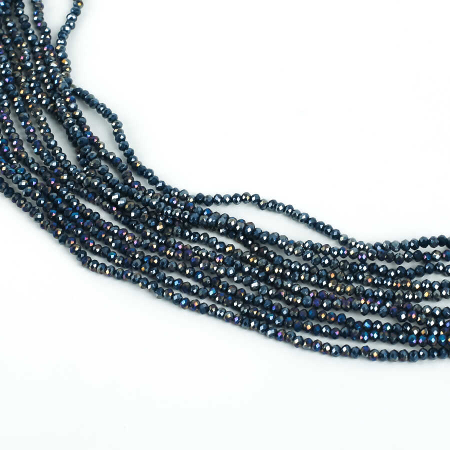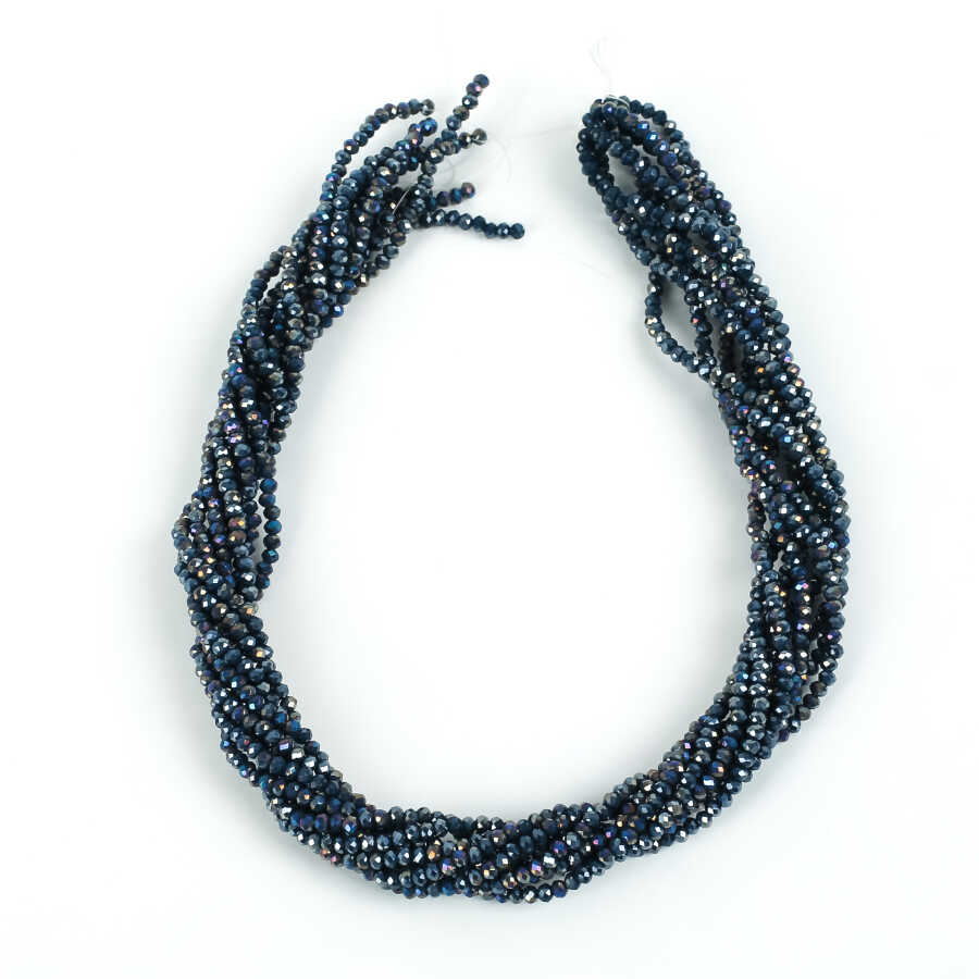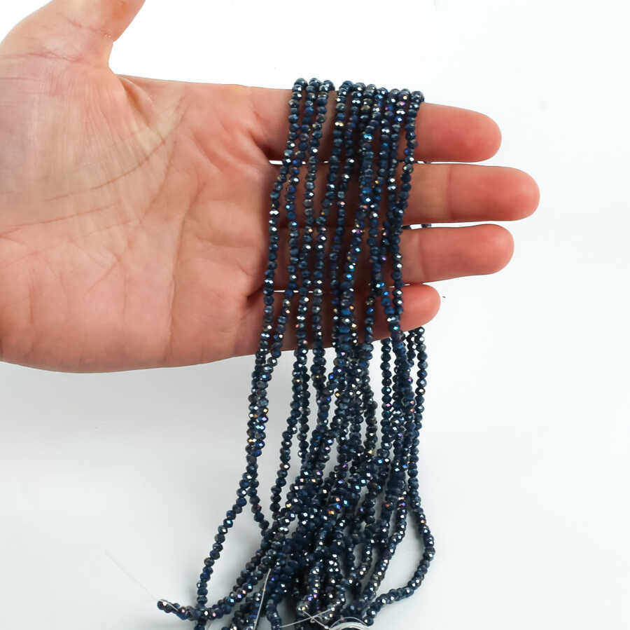 1 Dizi (145-155 Adet) - 2 mm Yassı Kristal Cam Boncuk Dizisi Mat Janjanlı Lacivert Renk 1.Kalite