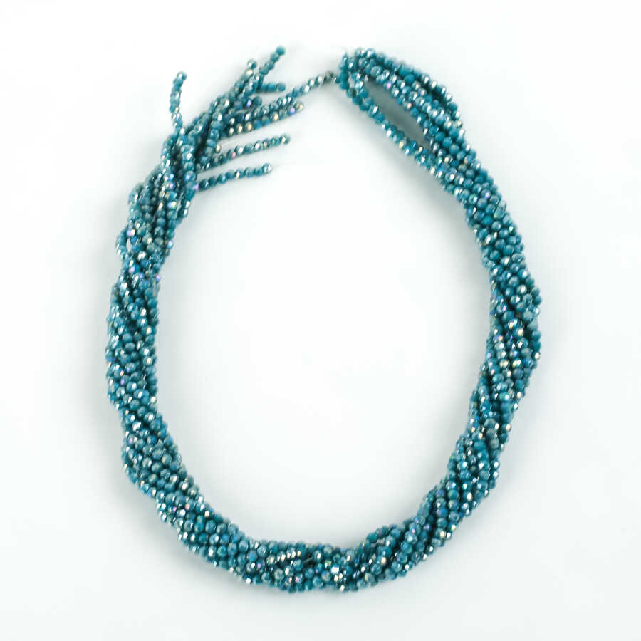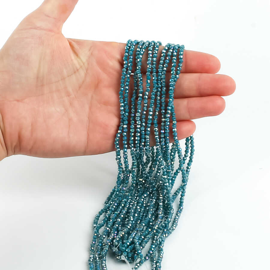 1 Dizi (145-155 Adet) - 2 mm Yassı Kristal Cam Boncuk Dizisi Mat Janjanlı Petrol Mavi Renk 1.Kalite