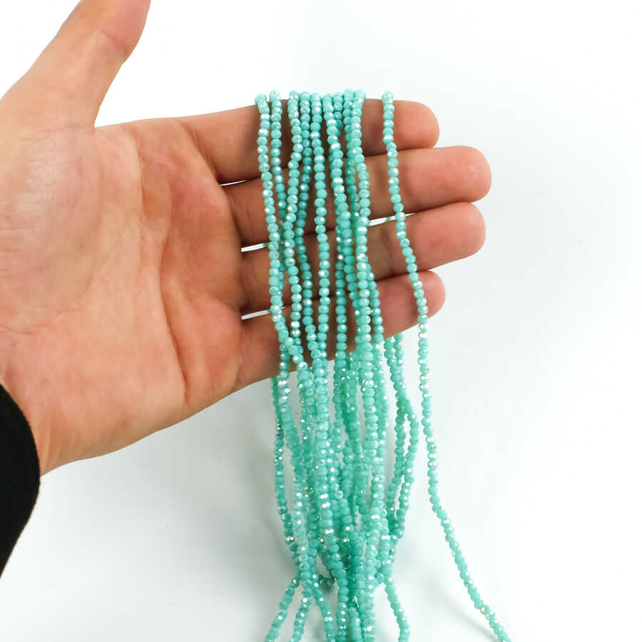 1 Dizi (145-155 Adet) - 2 mm Yassı Kristal Cam Boncuk Dizisi Mat Janjanlı Turkuaz Renk 1.Kalite
